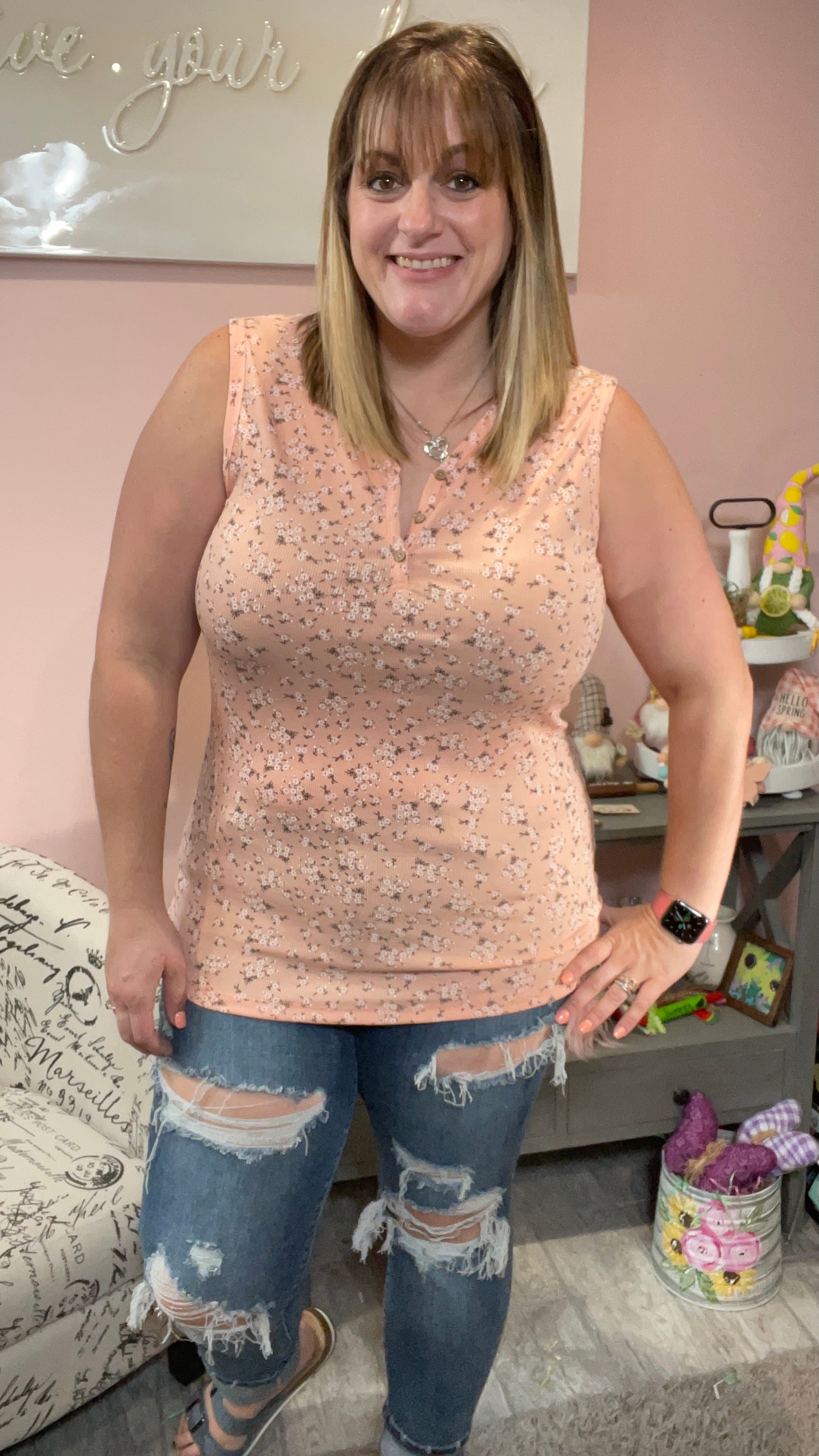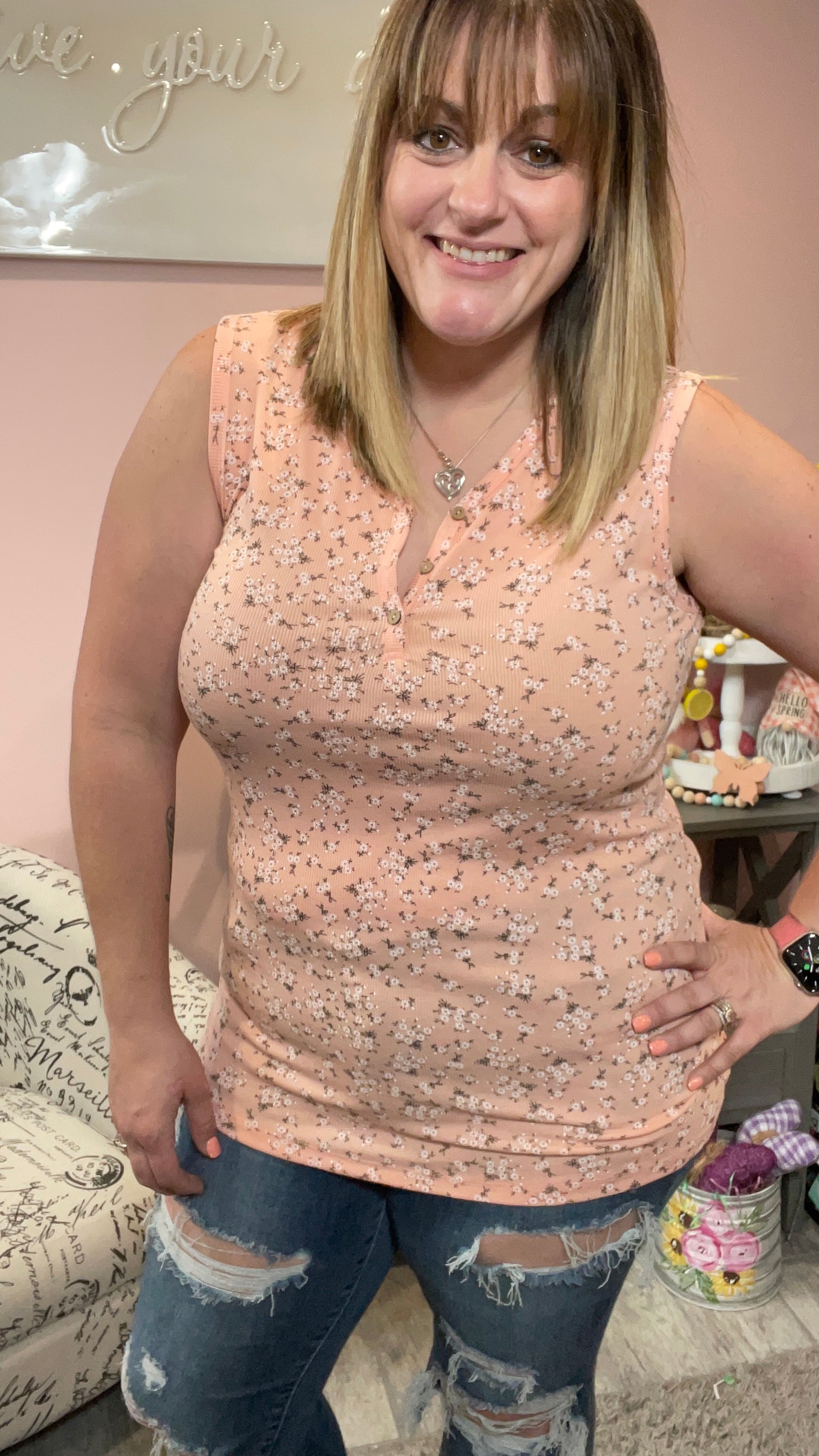 Peach Floral Addison Henley Tank