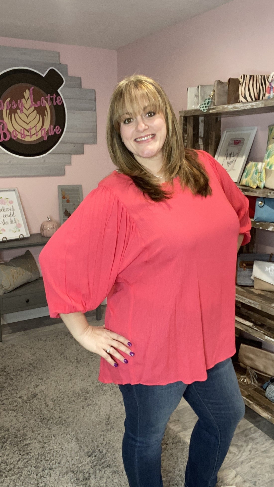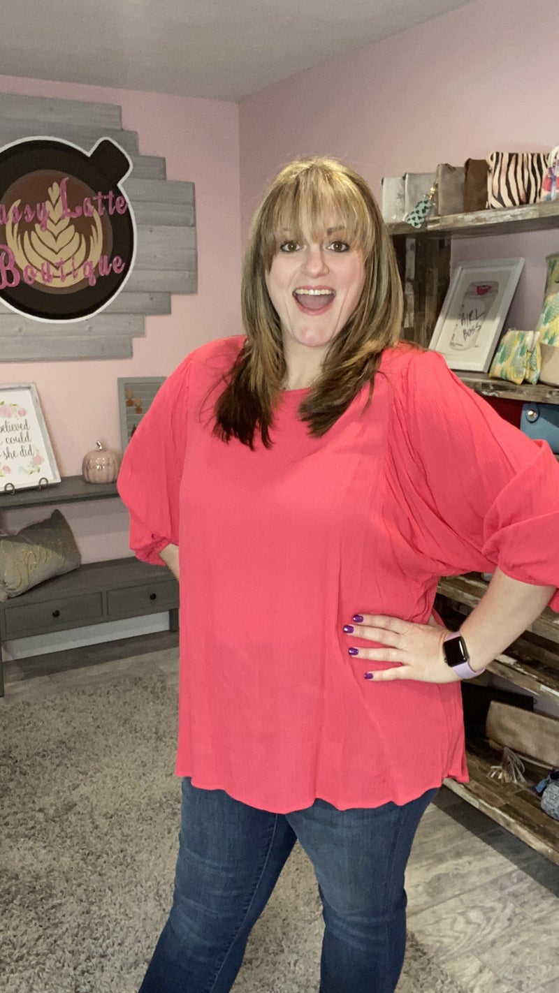 This gorgeous coral dolman top can be dressed up or down!