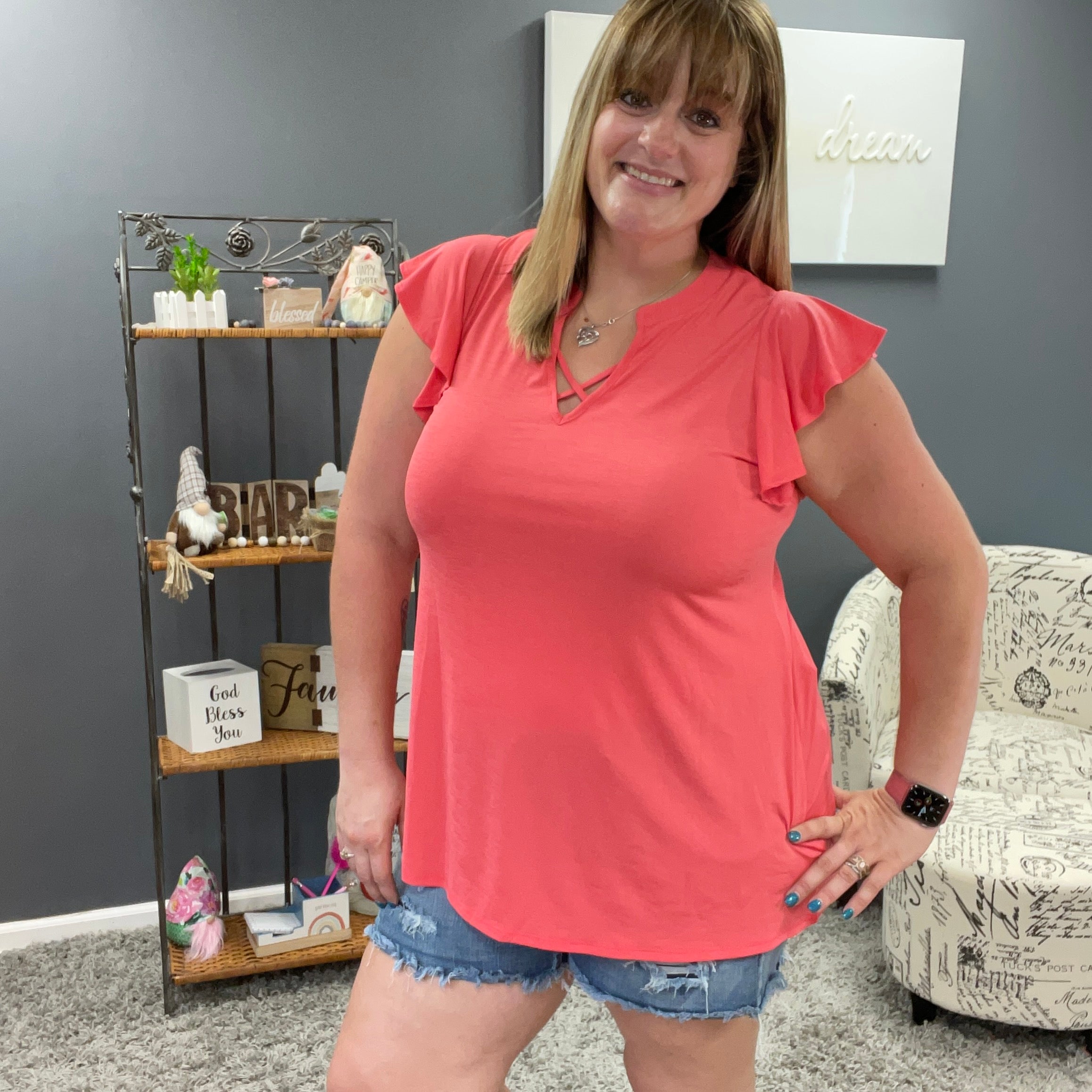 Coral Ruffle Sleeve Top