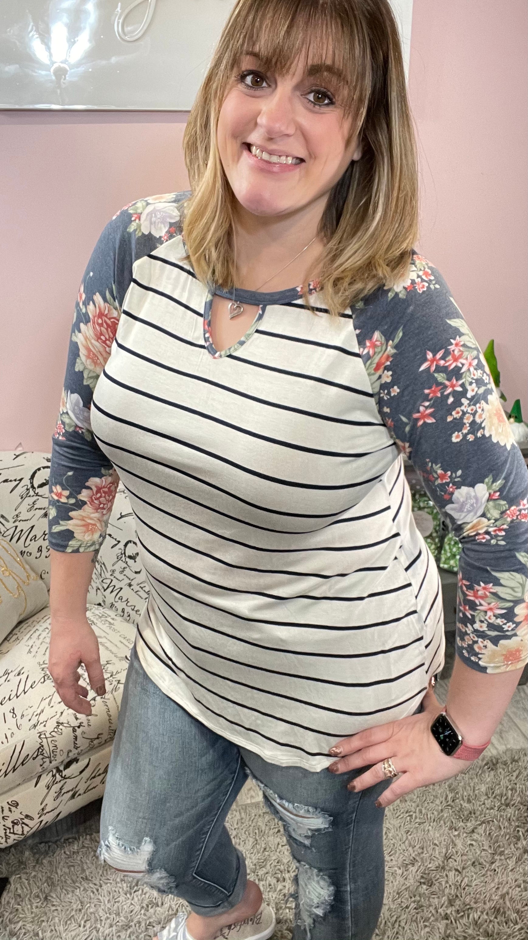 Floral Keyhole Raglan Tee