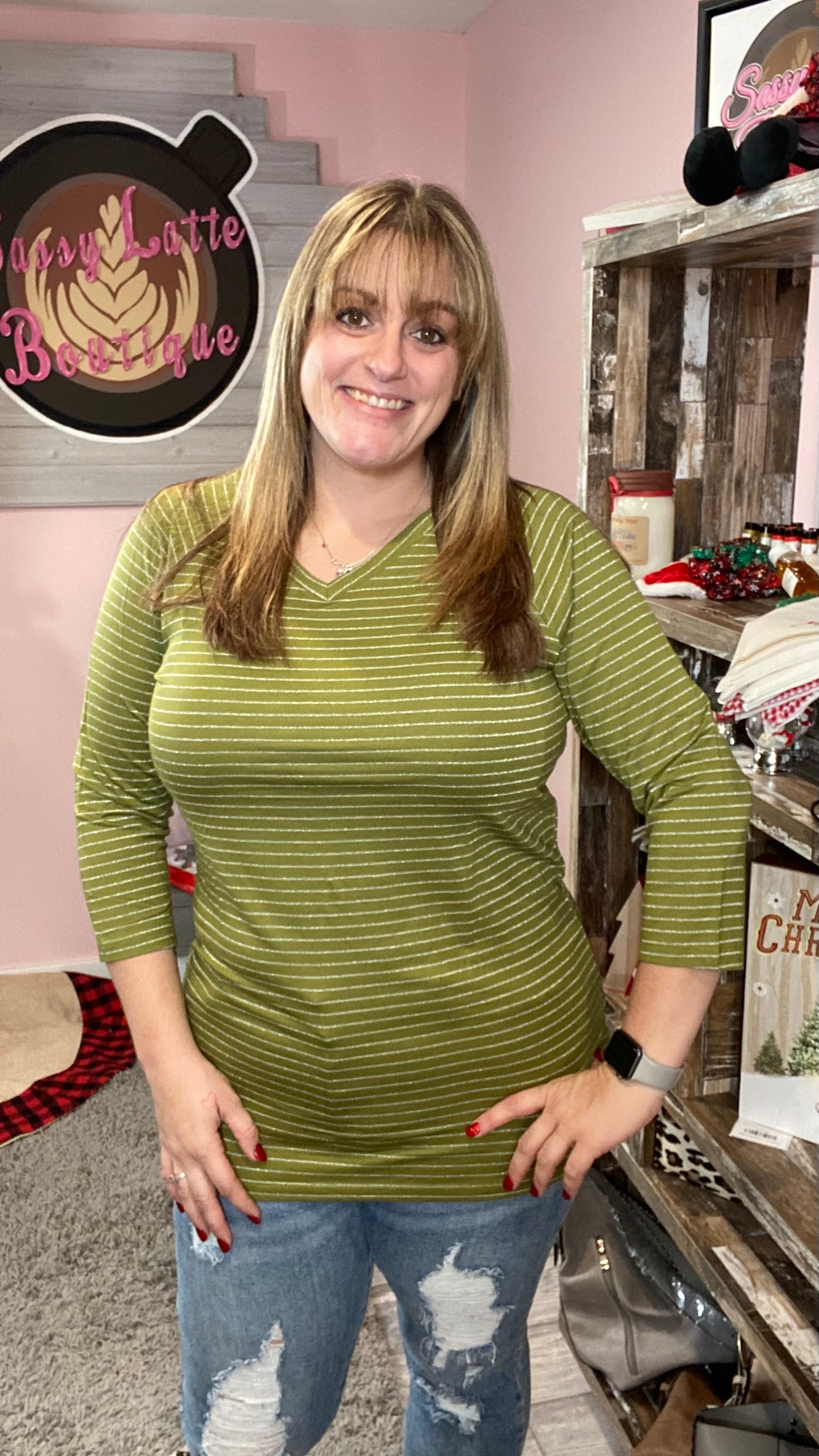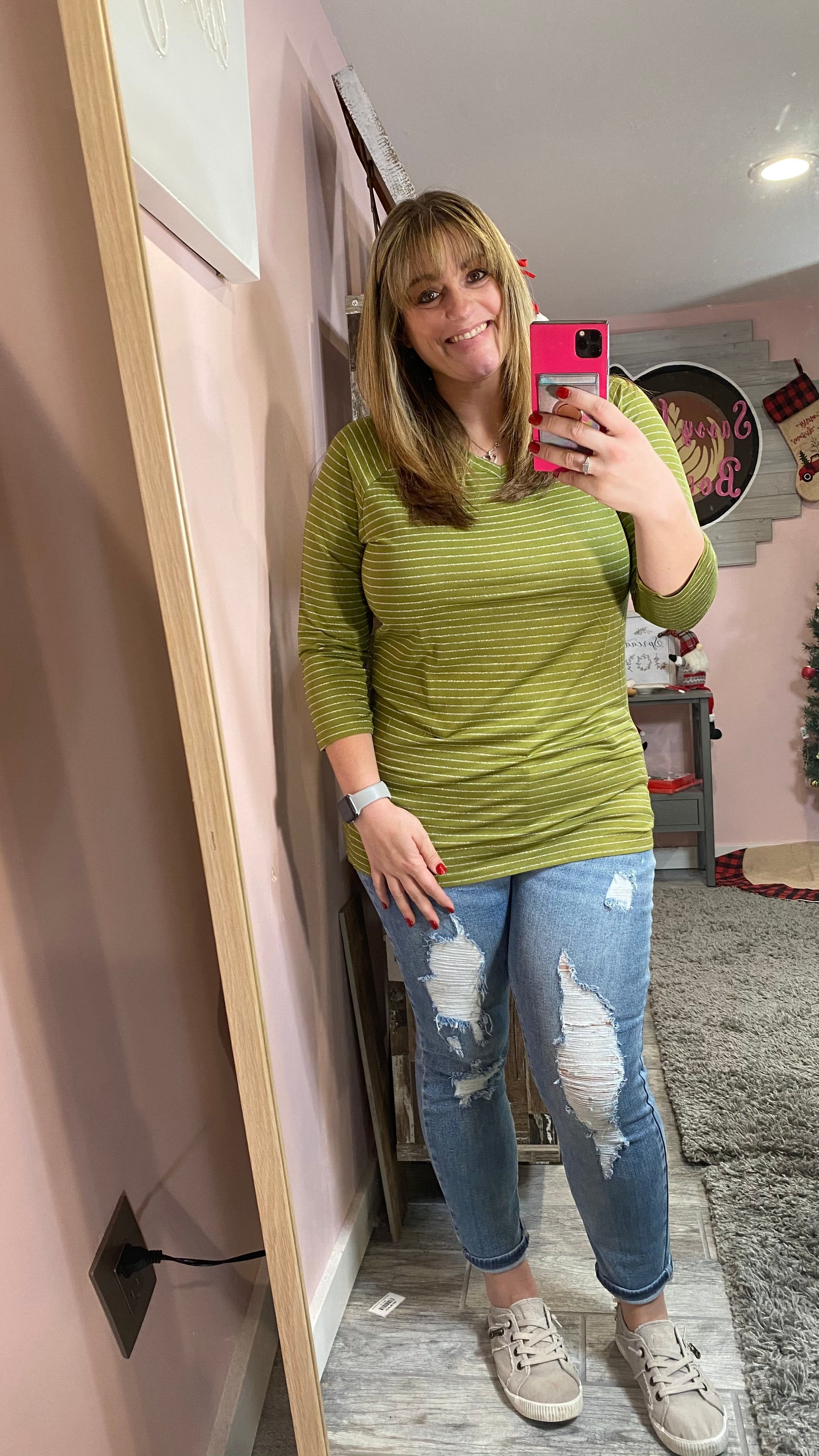 When we say this fabric is dreamy, we mean it! Very soft and stretchy, and like a sweatery French terry on the inside! Plus the silver stripes really make it pop!