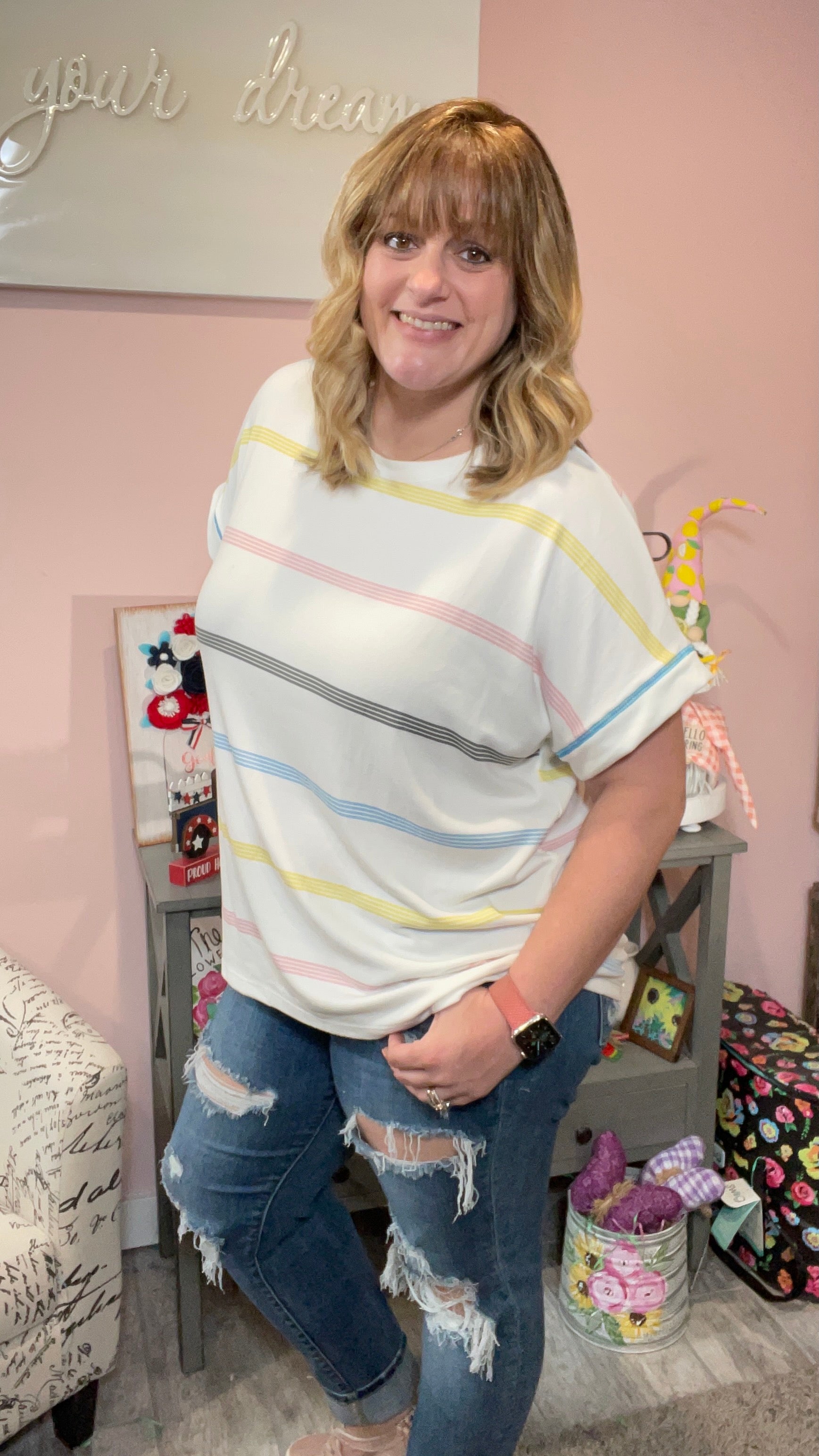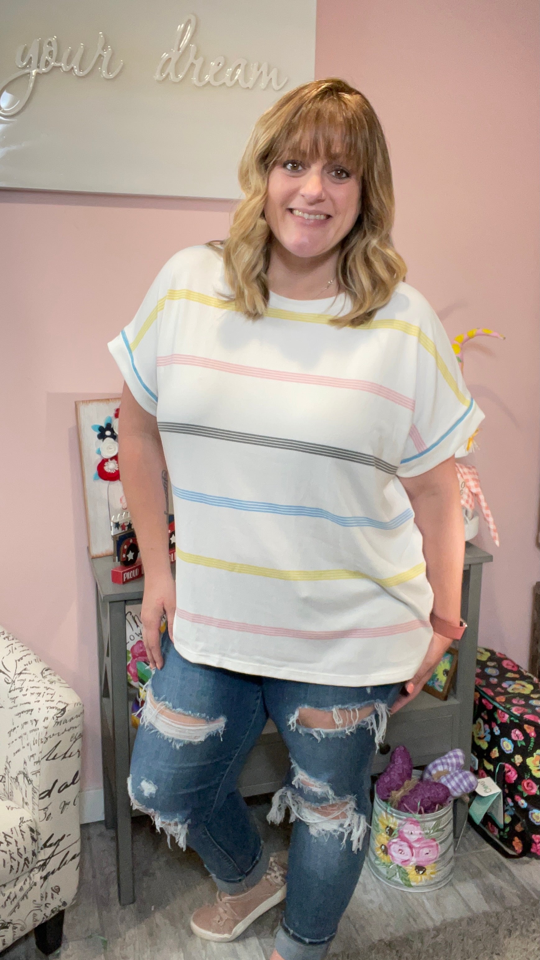 Off White Pastel Stripe Boxy Top