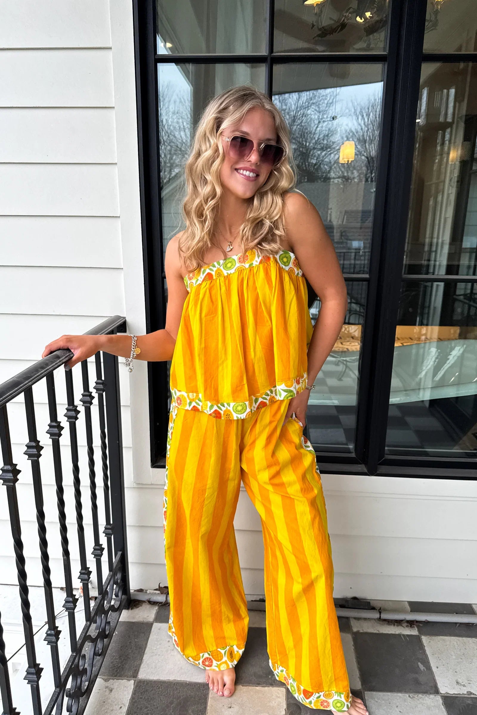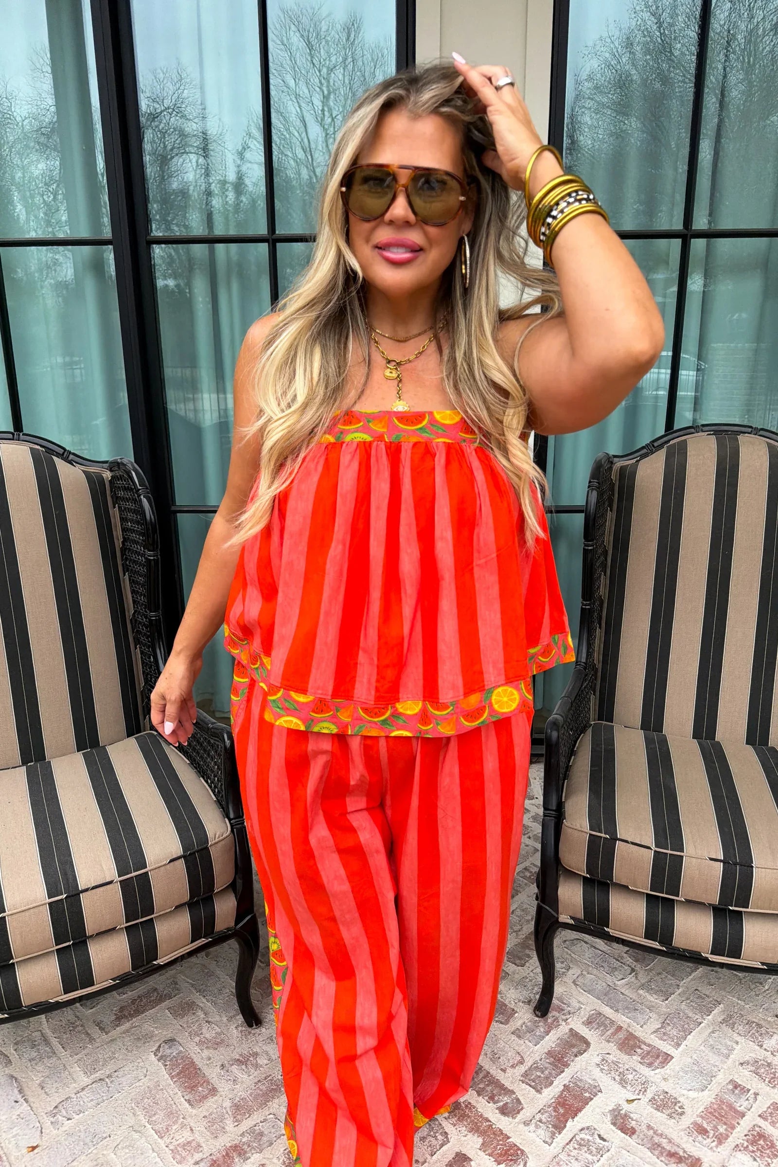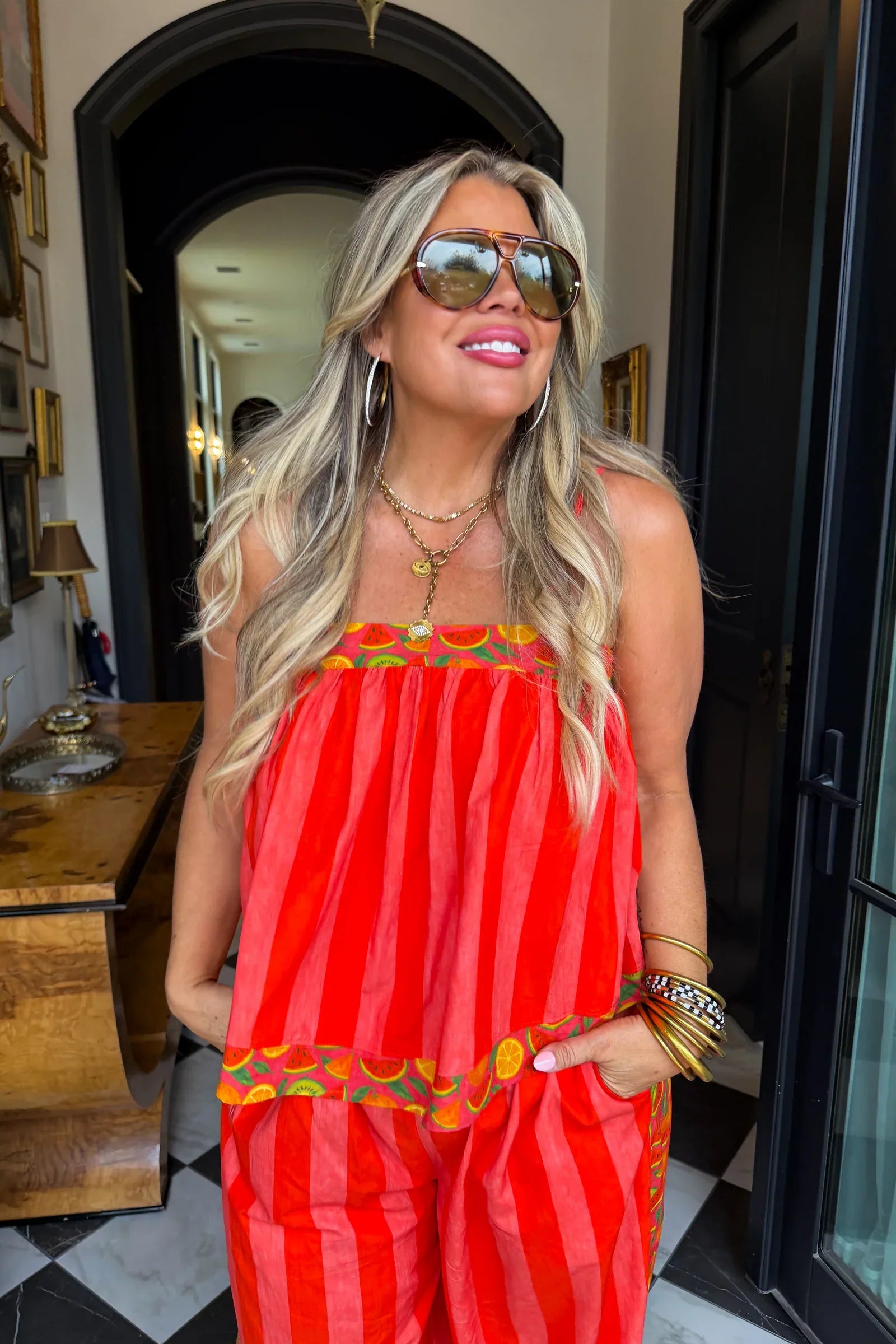 Add a splash of sunshine to your style with this cute stripe tank! Features adjustable shoulder straps with an elastic back section for stretch. Colors are playful citrus-inspired, lightweight and perfect for warm-weather days. Pair it with our matching, pants, shorts or denim for an effortlessly fun, tropical-chic look!