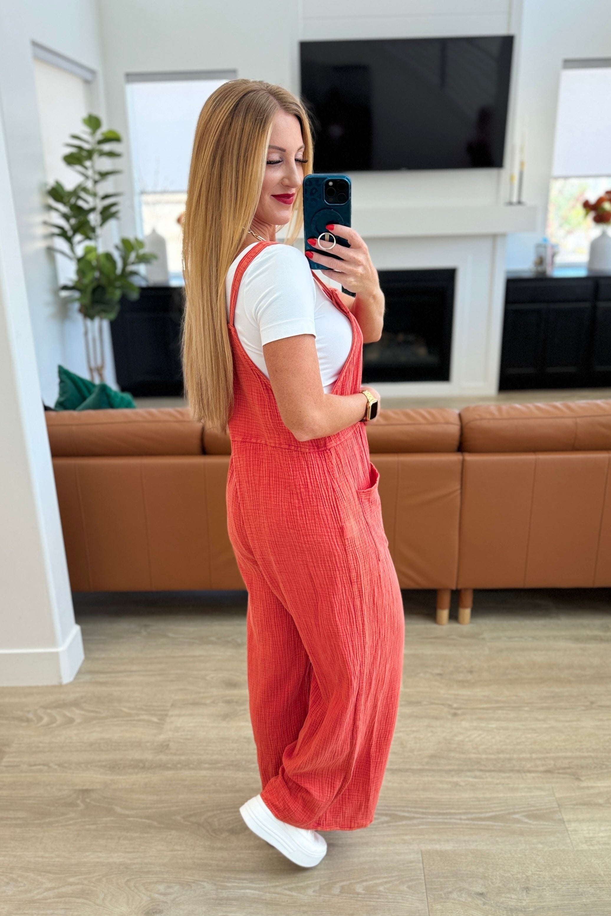 Be the talk of the town with our Yankee Doodle Crinkle Knit Jumpsuit. Made with crinkle woven fabric, it offers a one-of-a-kind texture while remaining lightweight and breathable. And with adjustable straps, functional pockets, and a flattering straight leg fit, you'll be both stylish and comfortable.