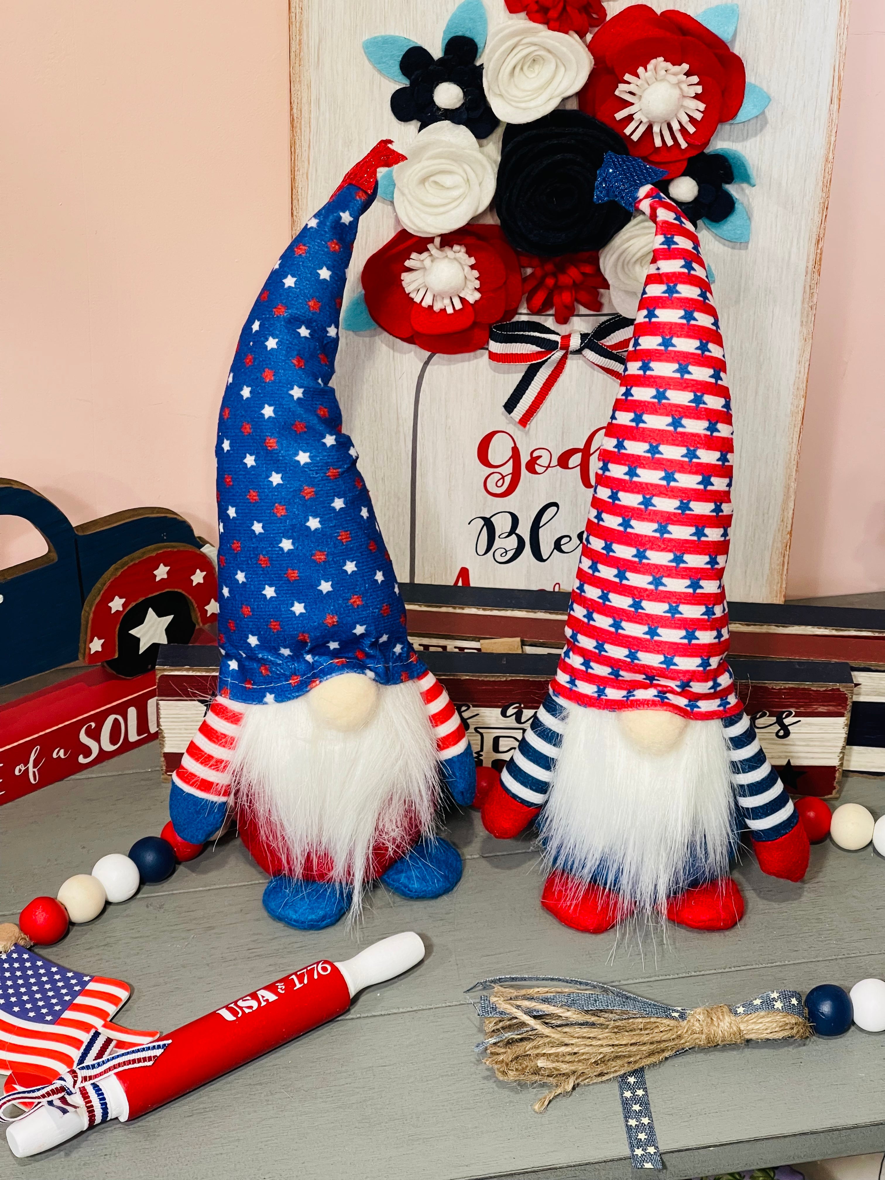 There are two different designs. Each one matches our custom patriotic garland and rolling pins perfectly! These will make great tiered tray pieces or everyday decor!