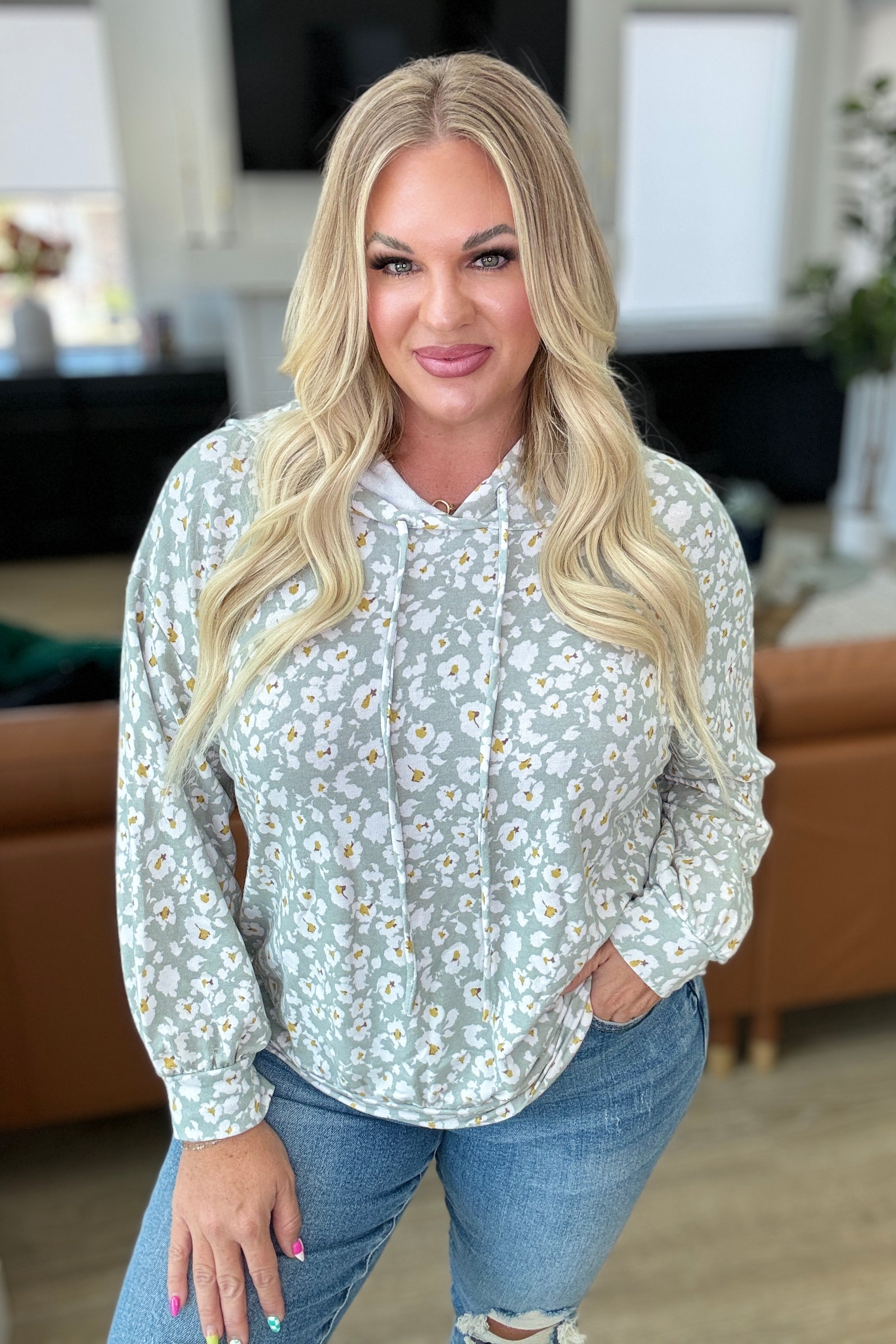 Cozy up with our A Touch of Pollen Pullover! Made from brushed French Terry for ultimate comfort. Stay warm and stylish with the hooded design and functional drawstring. The whimsical floral print, drop shoulder, and banded sleeve cuffs and hemline add an adorable touch to this cute and comfortable sweater.