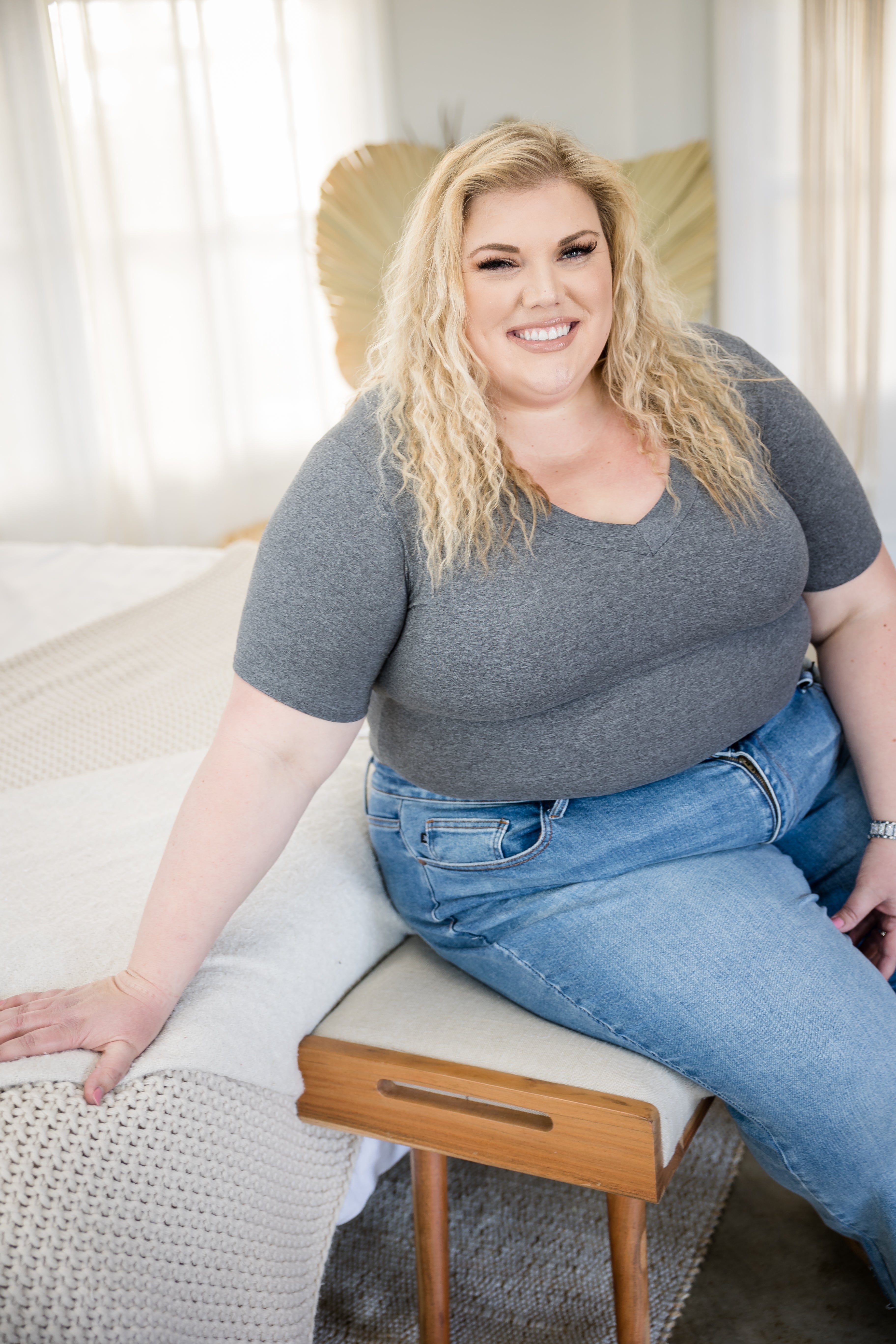 Whatever you decide to pair this buttery soft bodysuit with, you will be all put together! Bodysuits give you the perfect tuck, they are amazing to layer with, and they look great with just about any type of bottom (Jeans, Shorts, Skirts). With a fitted silhouette, this top features a v-neck, short sleeves and snap enclosure.