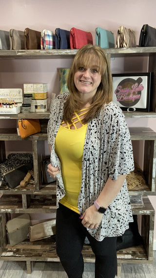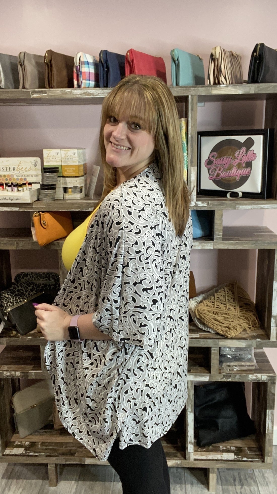 Black, grey, and white swirl cardigan! A staple for your wardrobe!