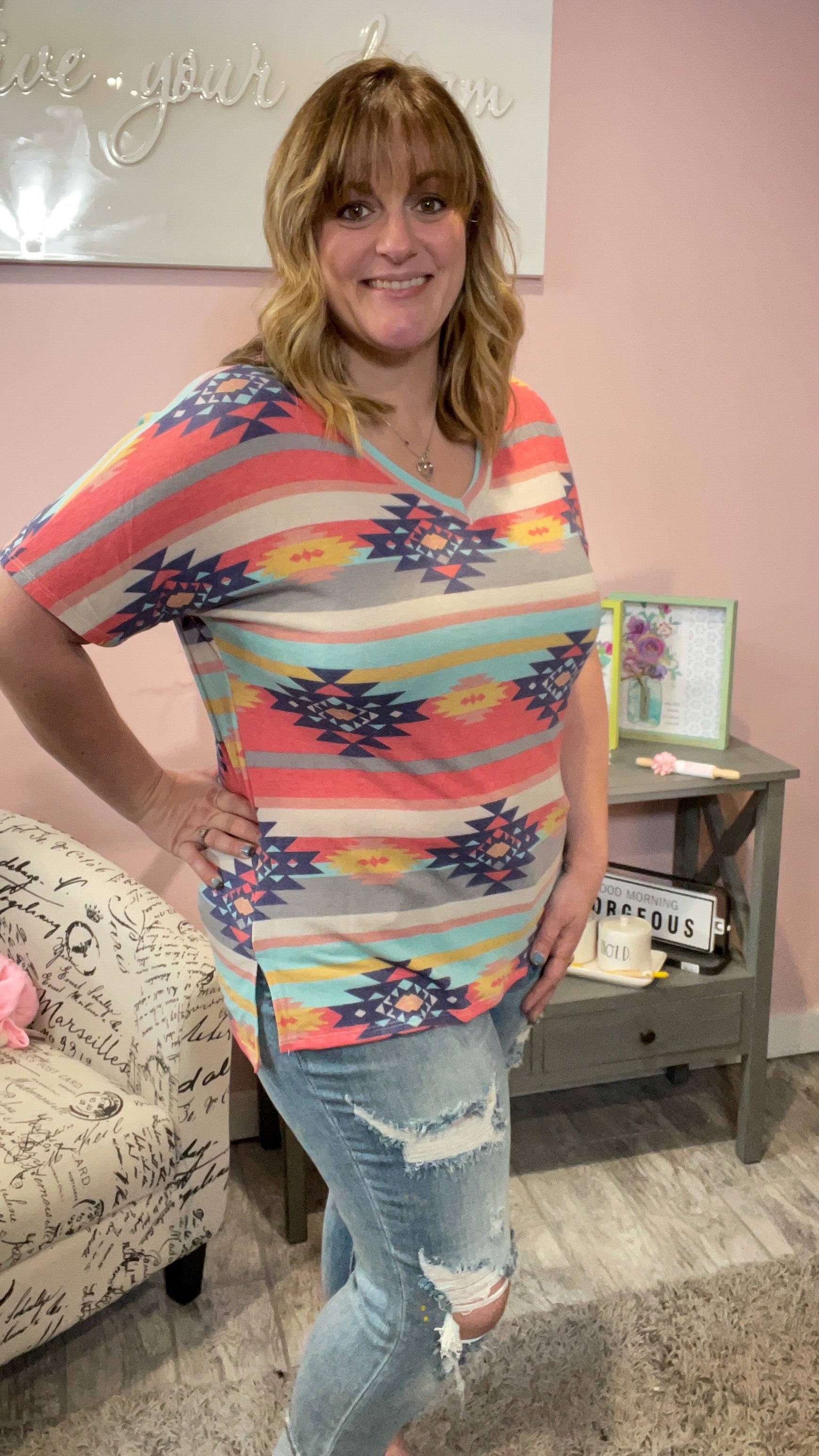 Aztec V-Neck Top