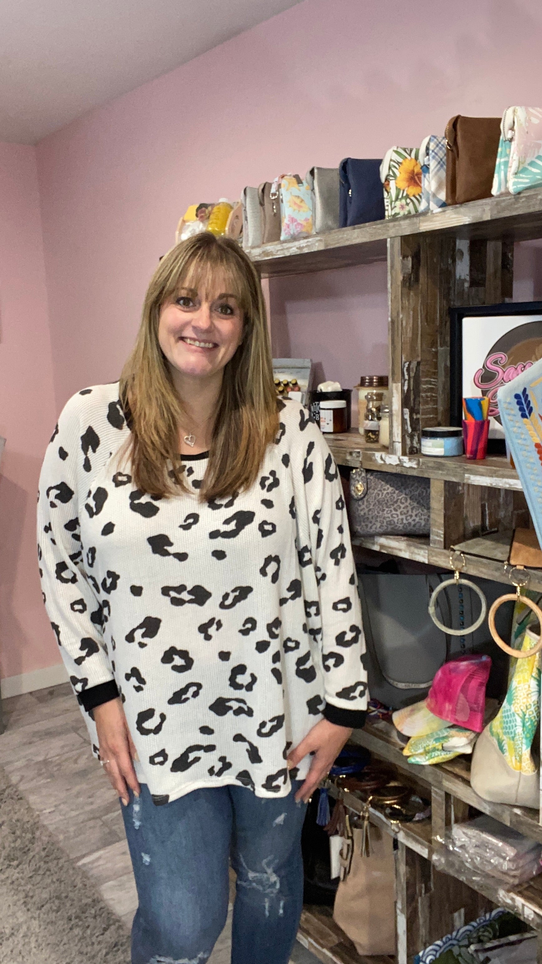Can I just say I love this one!! The waffle knit is so soft! And I love the fit. I am wearing a large for a relaxed fit but I can size down to a medium as well.
