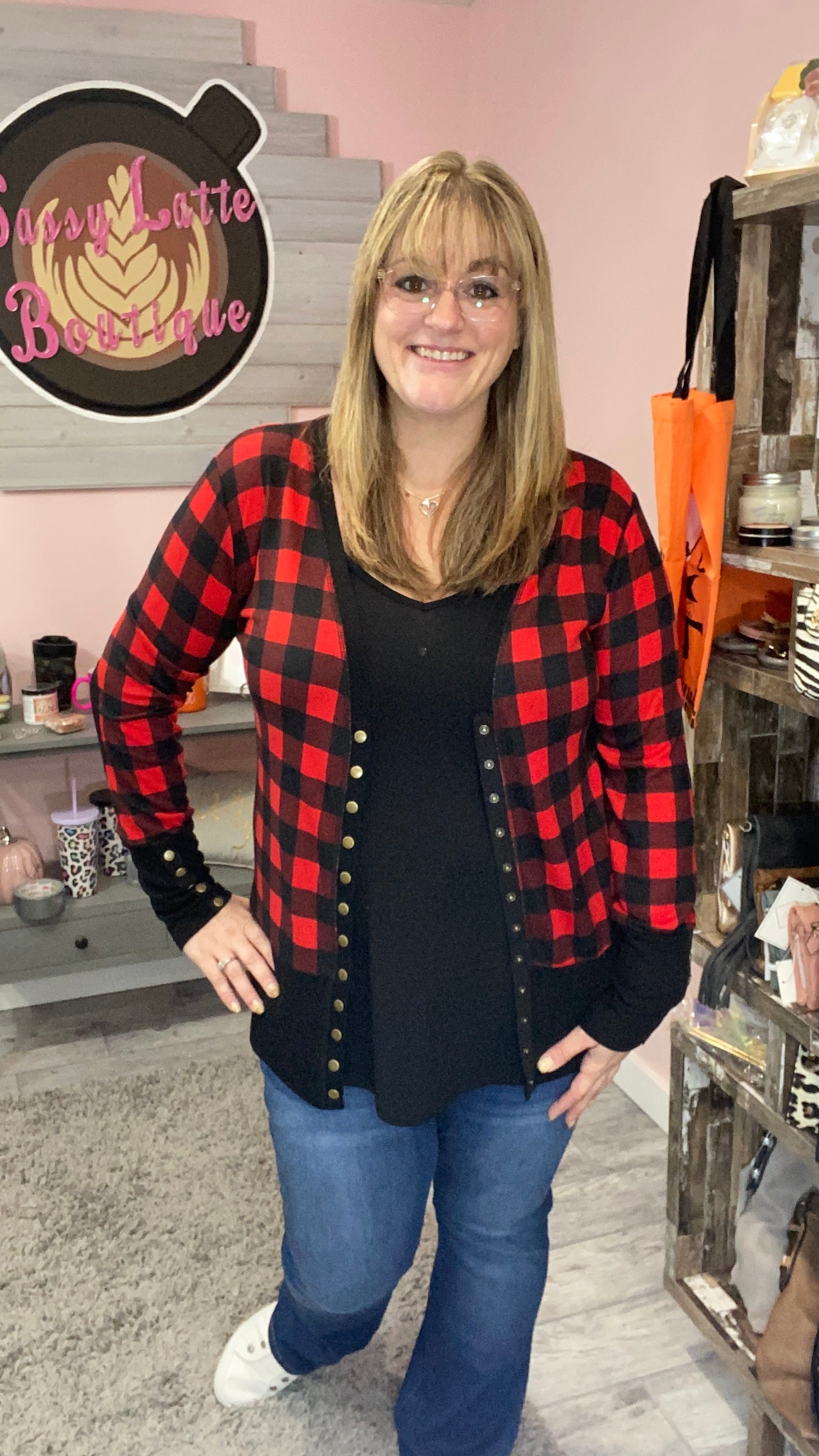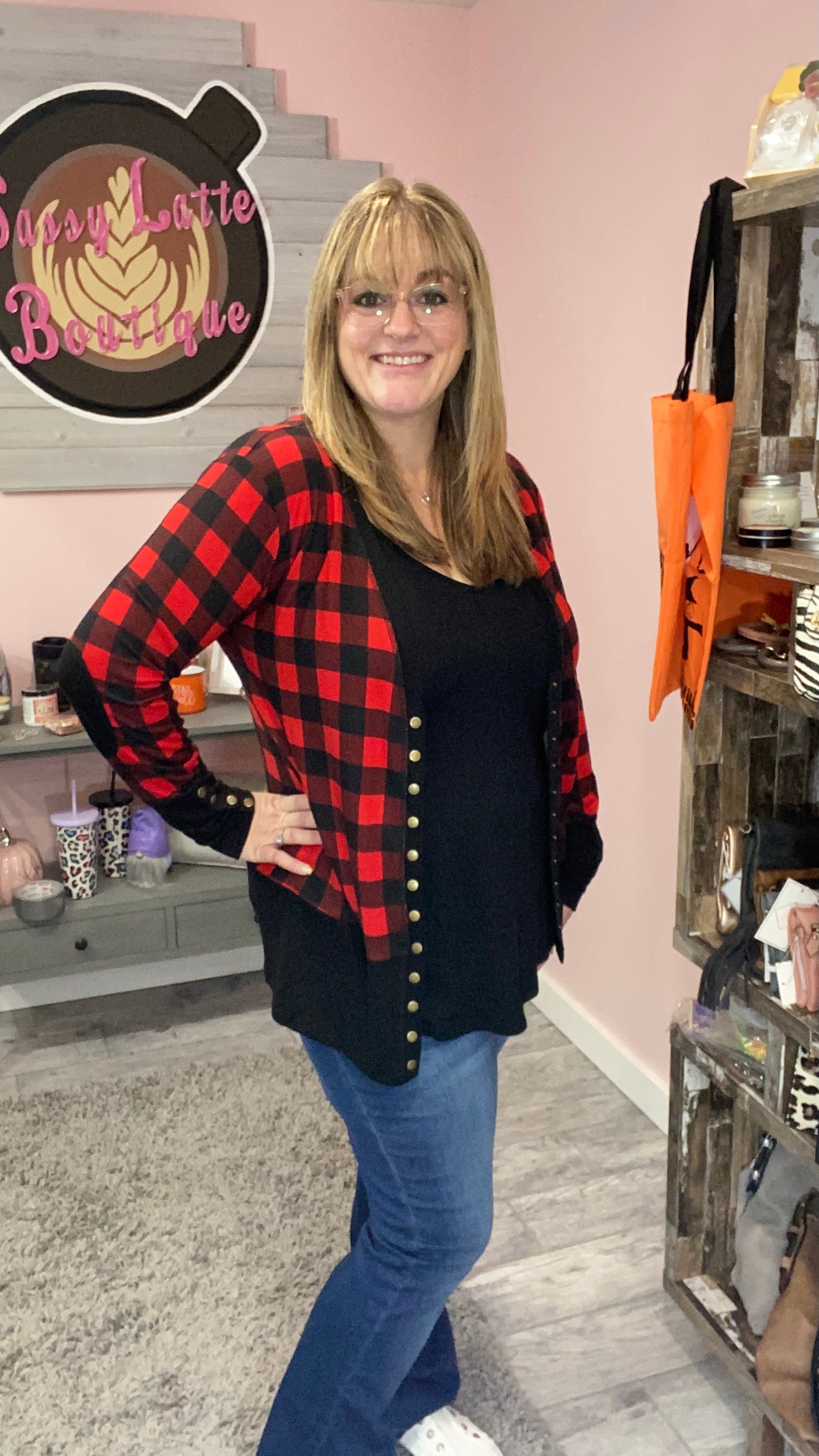 • Longer length, true to size fit. I can wear an XL open or a 1X if I want to snap it.