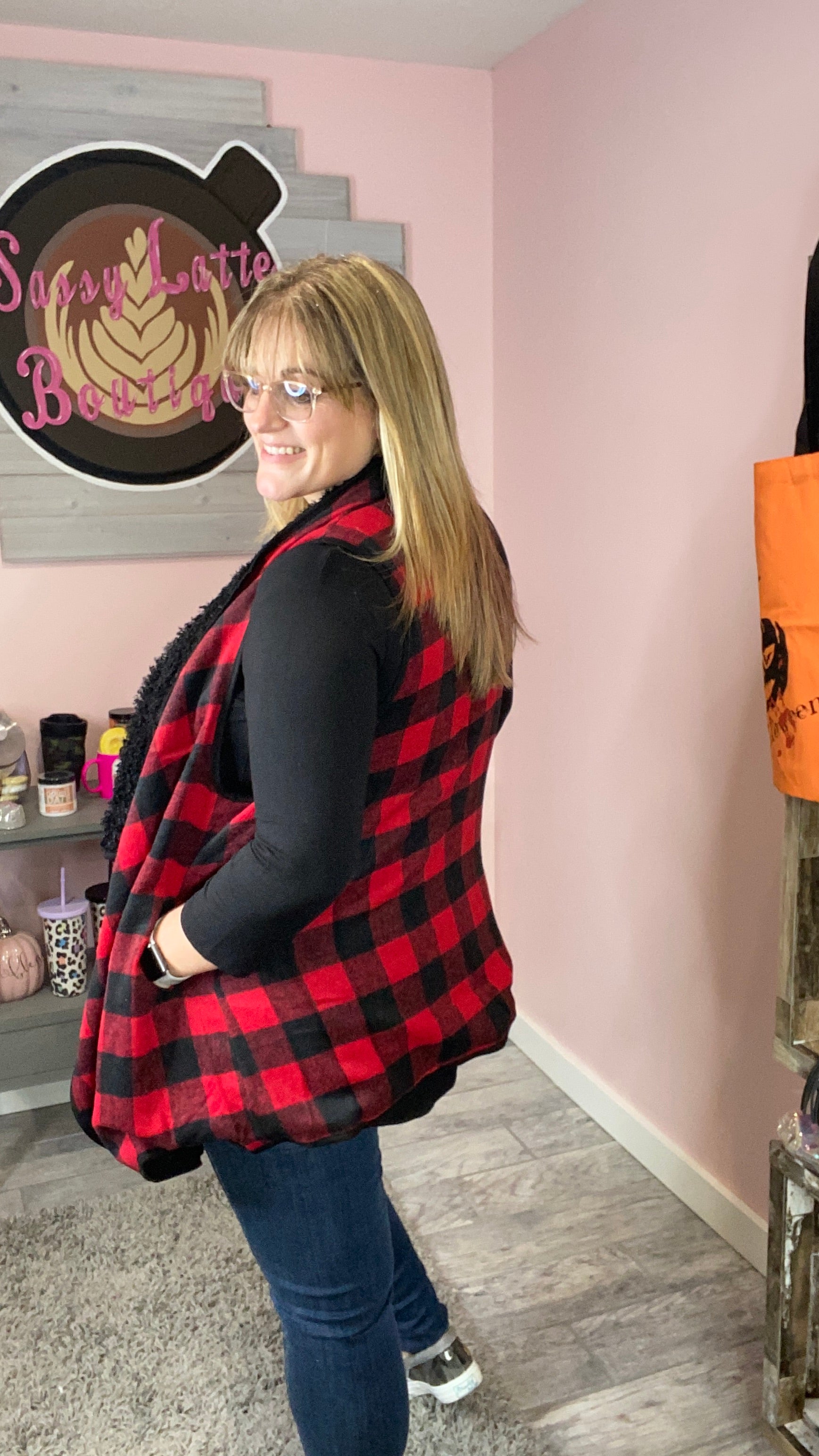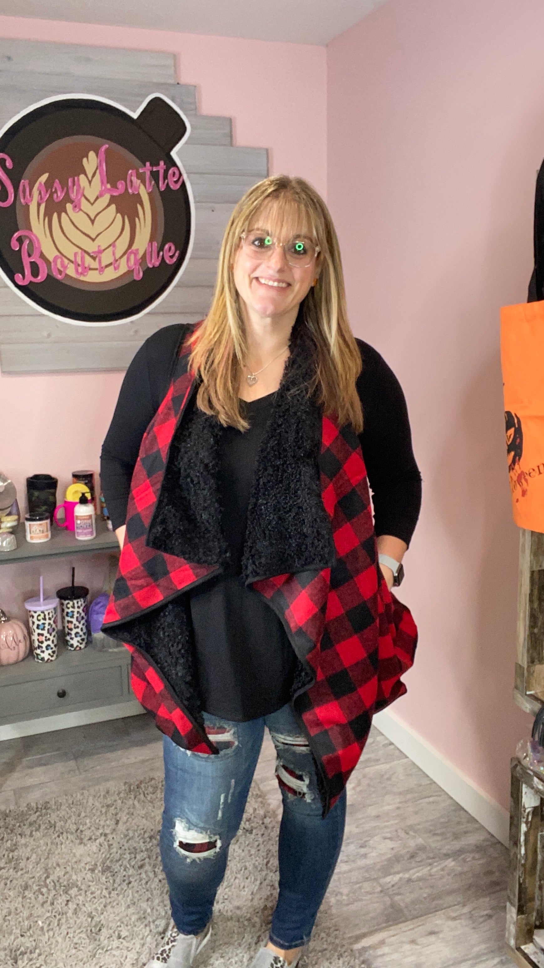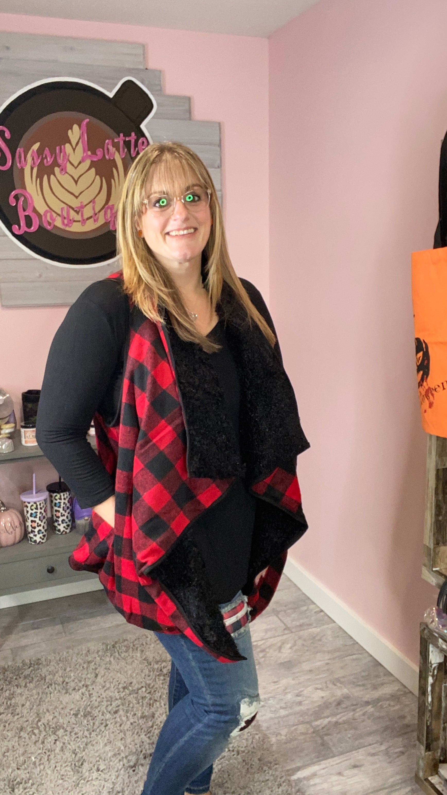 It’s sweater vest is absolutely amazing! The inside is a soft plush and the outside is a soft flannel. Did I also say it has pockets?!
