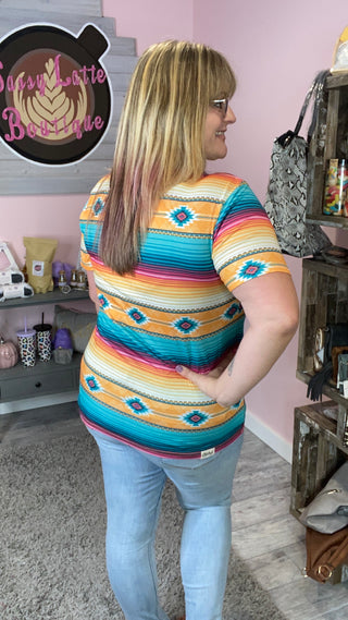 The fabric on this one is like heaven. And let’s talk about the print!! It is so vibrant. Serape is in and you will be styling in this one!