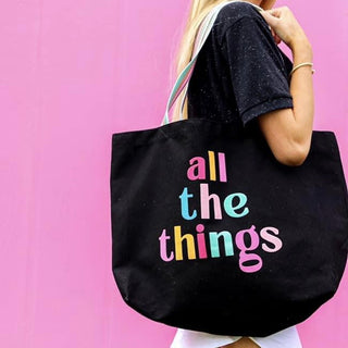 Who doesn’t love an oversized tote? You can fill up this cute canvas bag with literally “All the things” grocery, travel, swim, office, or school related and MORE! This bag is never full, but easy to carry and will be your new favorite go to.