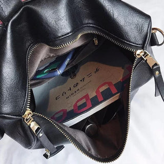 Vegan leather exterior with poly fabric lining.