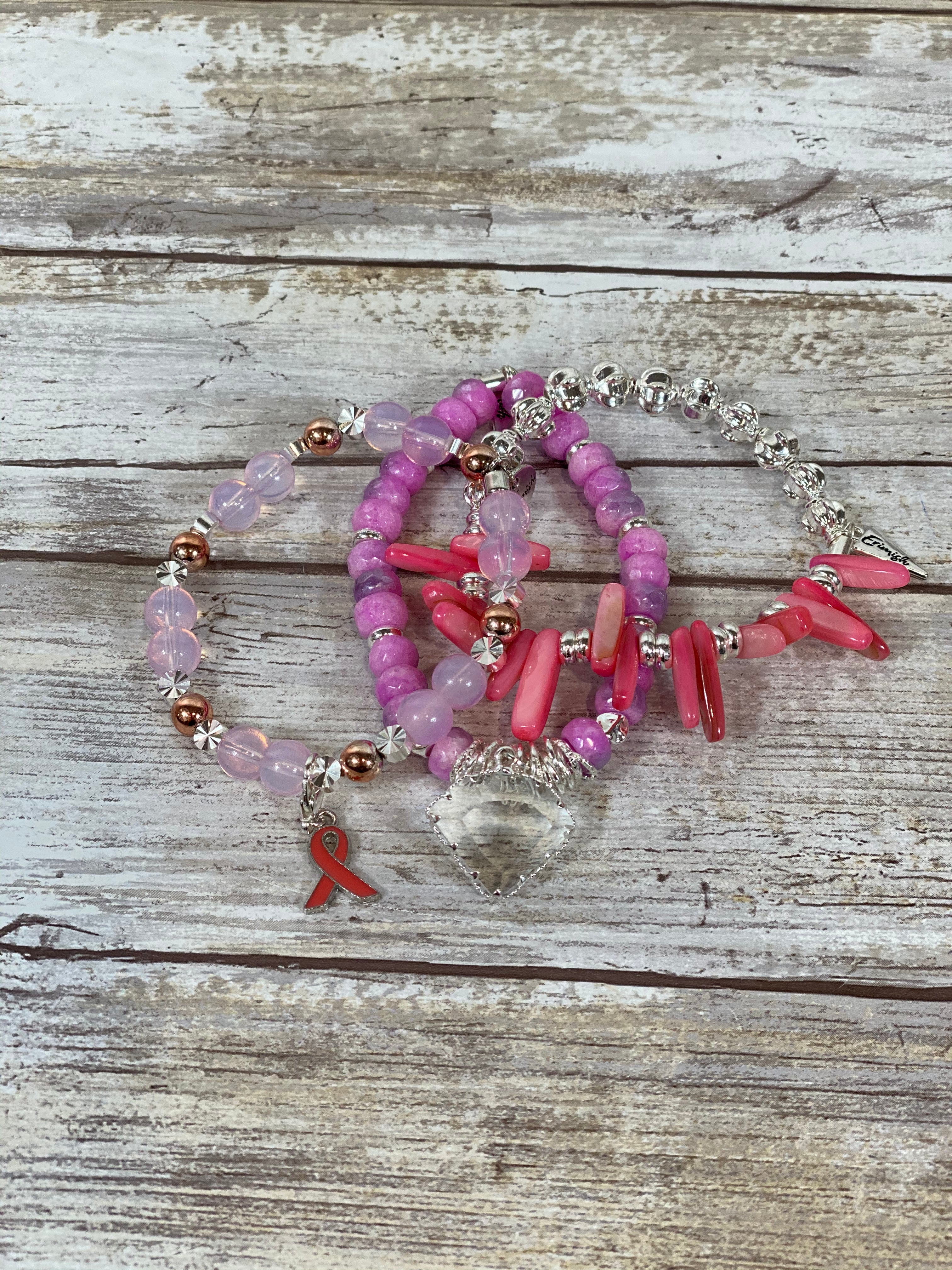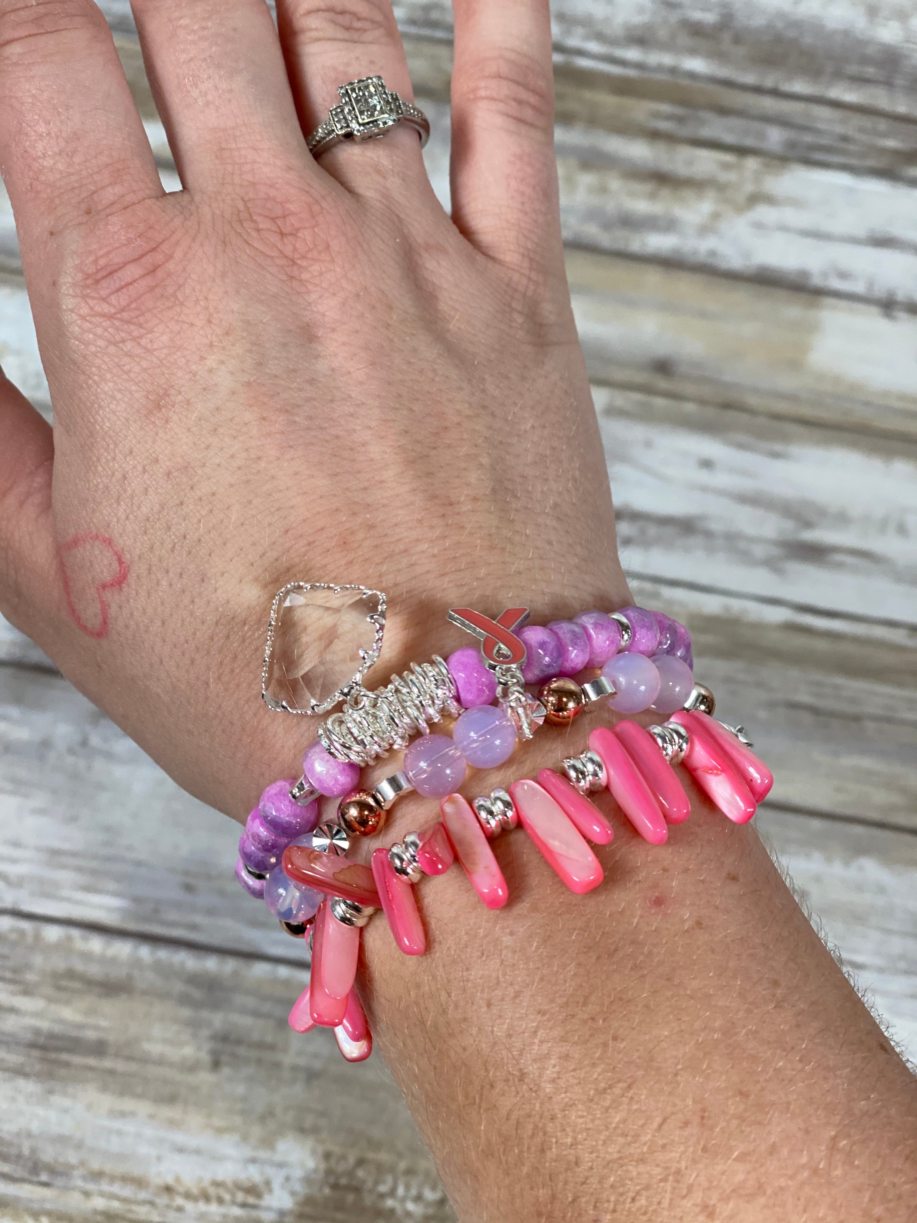 - This carded stack features soft & bright pinks in honor of breast cancer & details a pink ribbon charm to tell any fighter/survivors story.