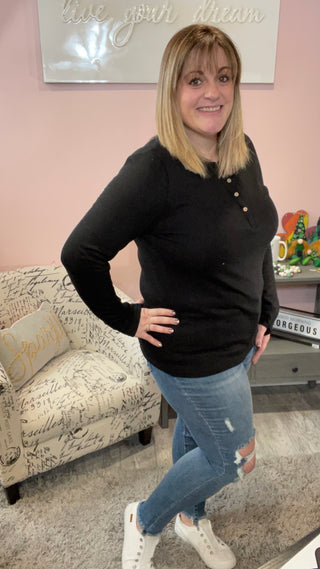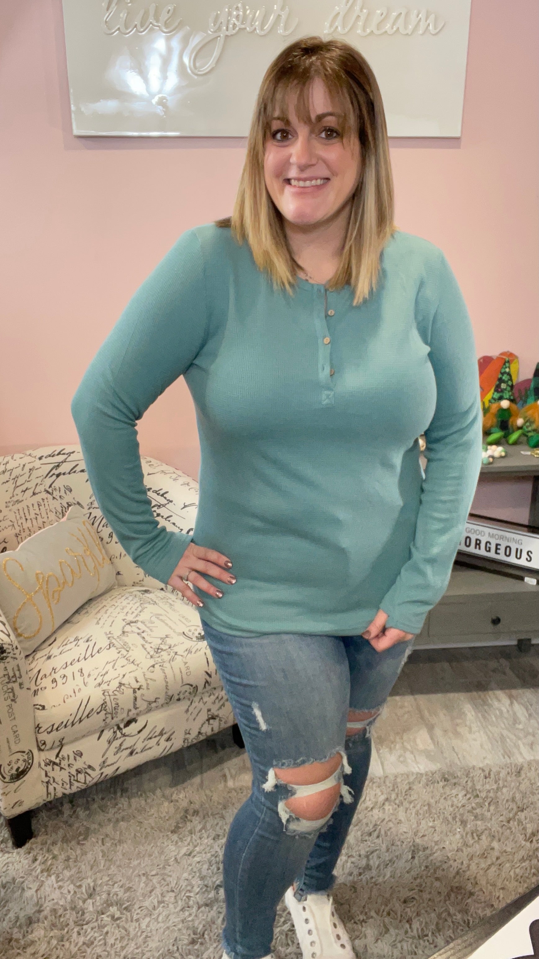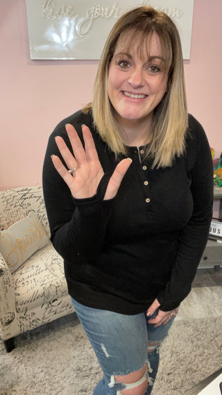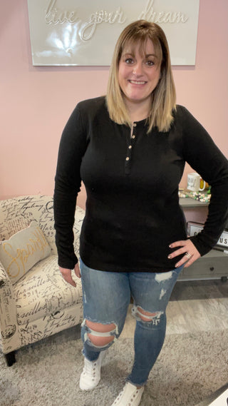 The perfect long sleeve henley top has arrived! Amazing fabric that is warm and sure to keep you cozy during the cooler weather. These also make the perfect pairing for any vest, and are super easy to layer! They feature functioning wood buttons as well as thumbholes - which we think is the perfect combination!