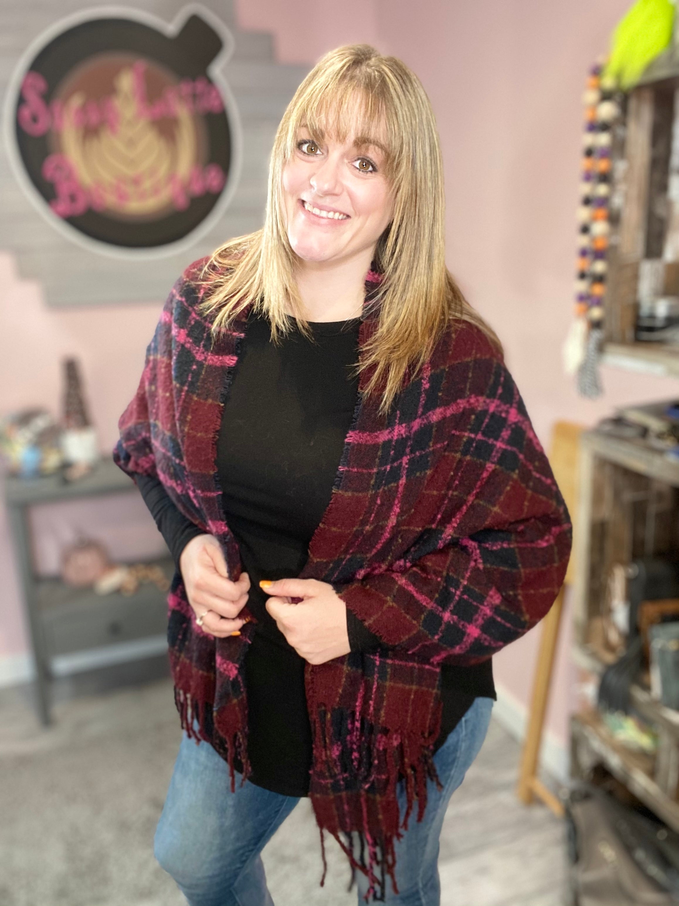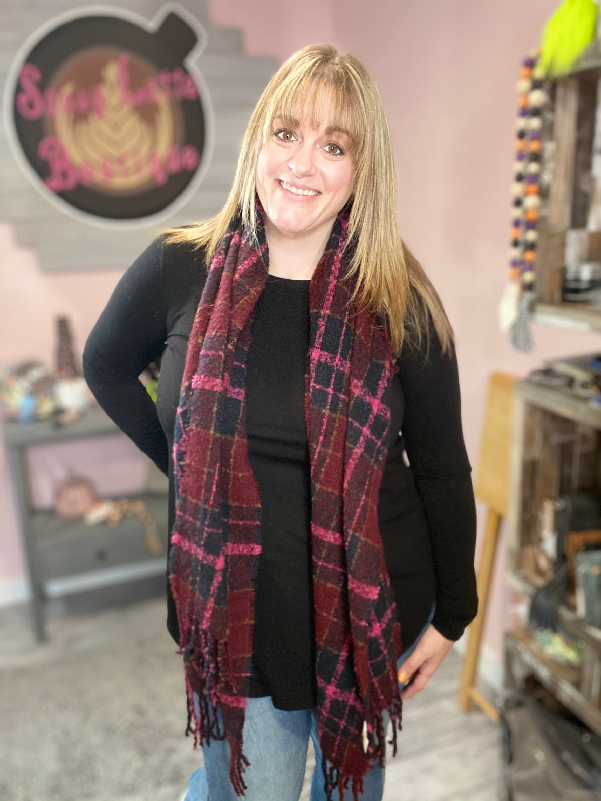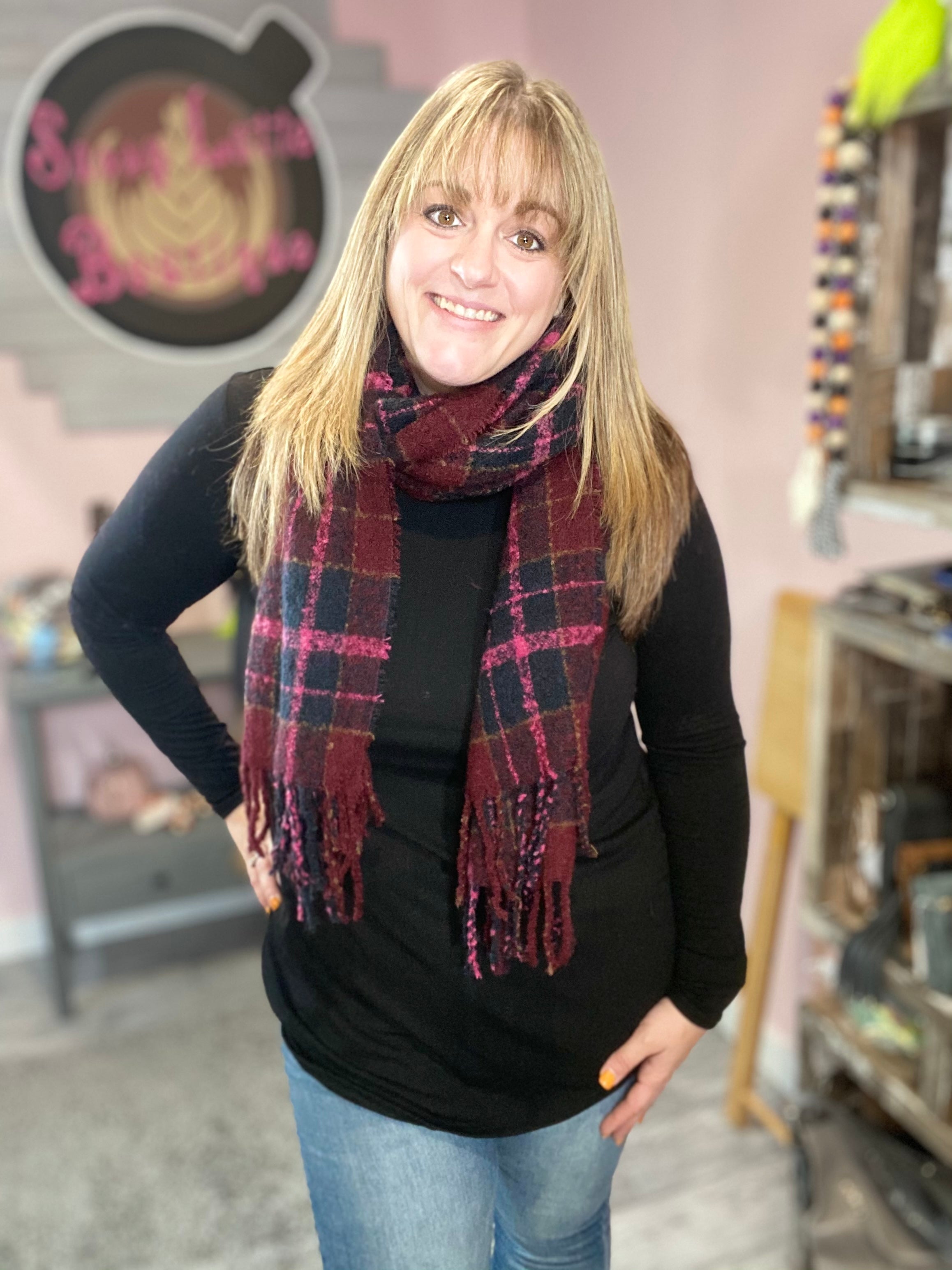 Long Soft Maroon Plaid Scarf