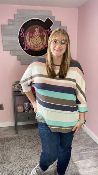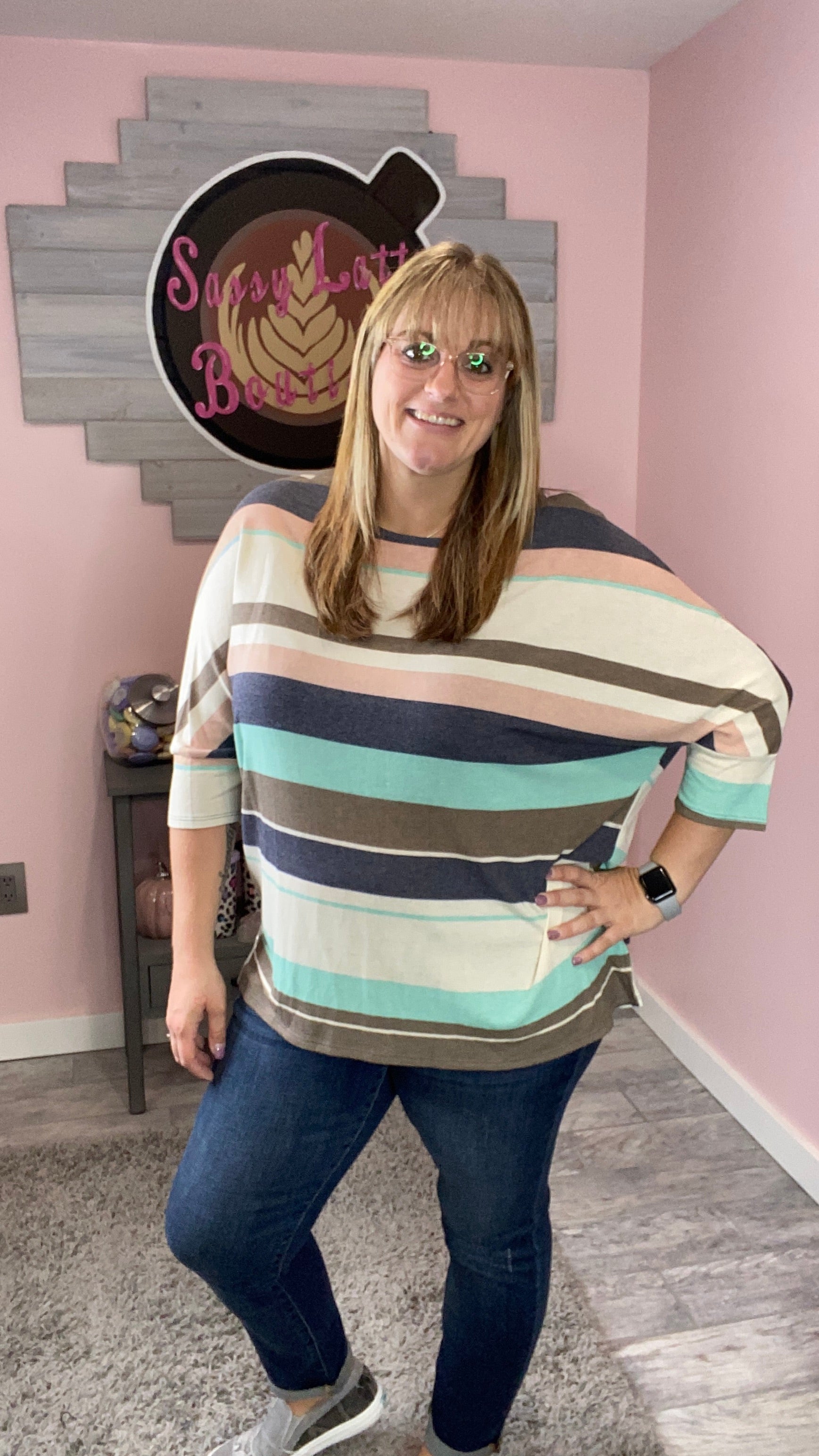 This is one of the most comfortable tops! The Fall pastel stripes make it even better..