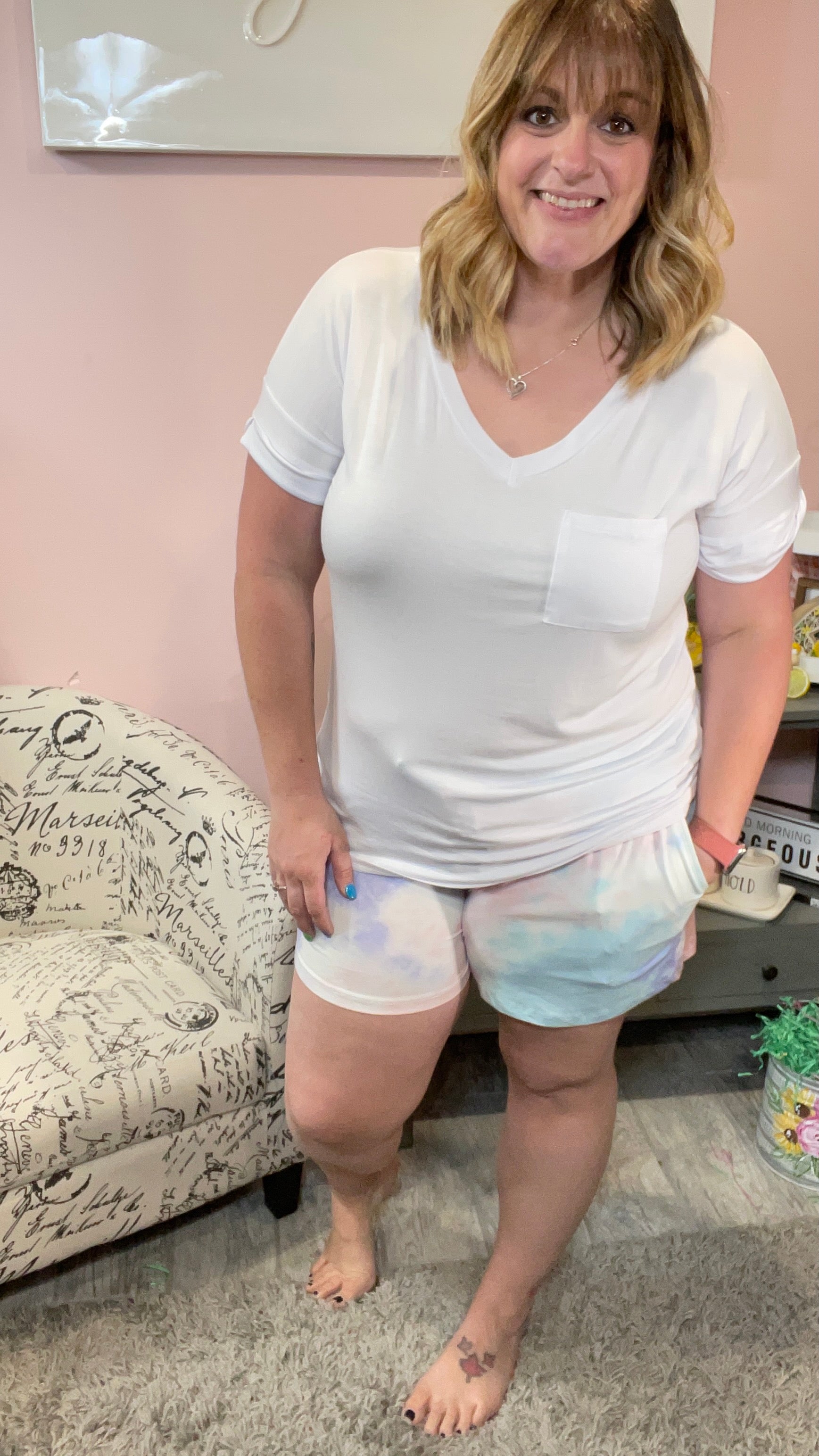 Super soft, brushed polyester shorts. They have great stretch and are true to size! I can wear a large or XL.