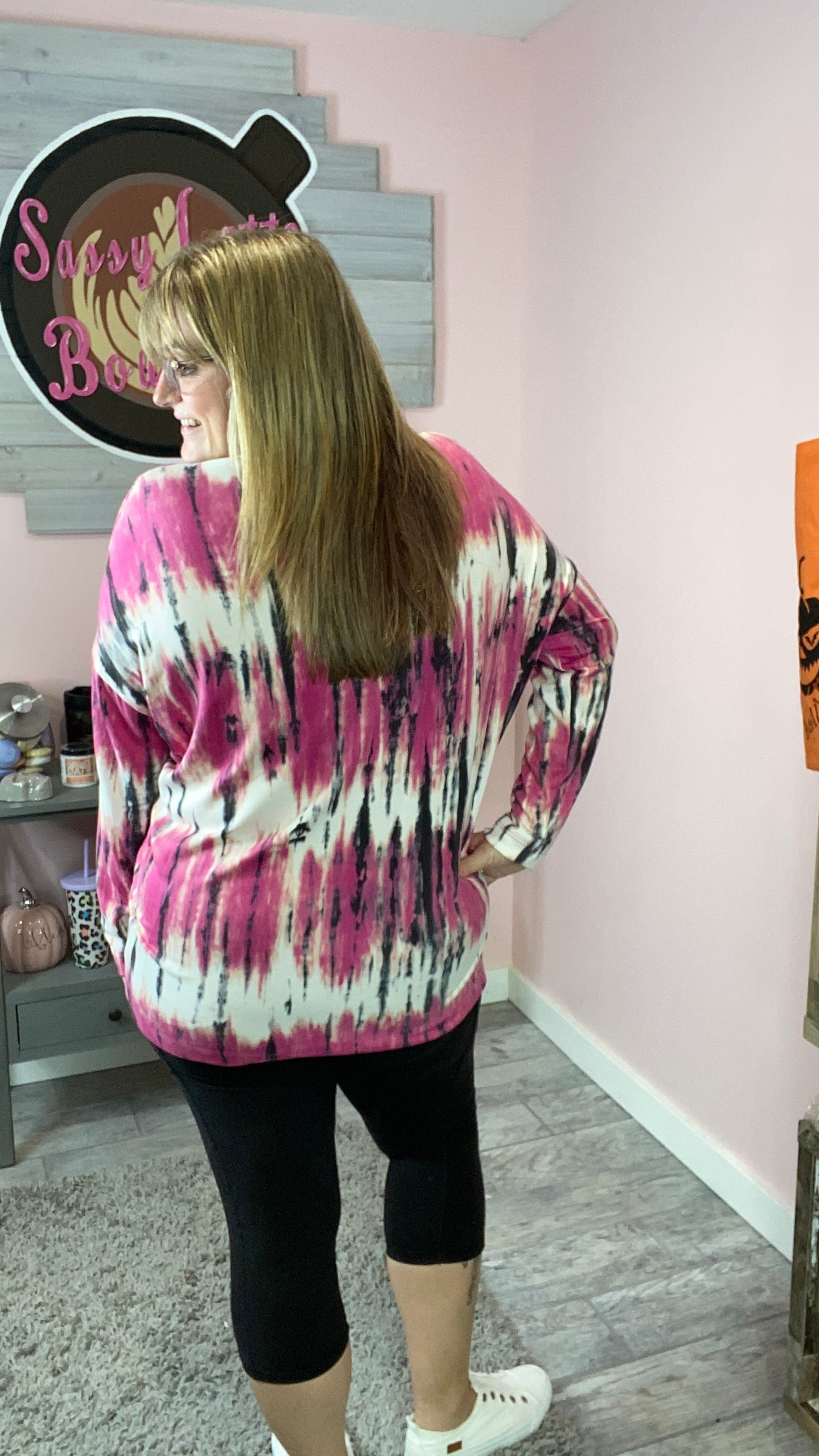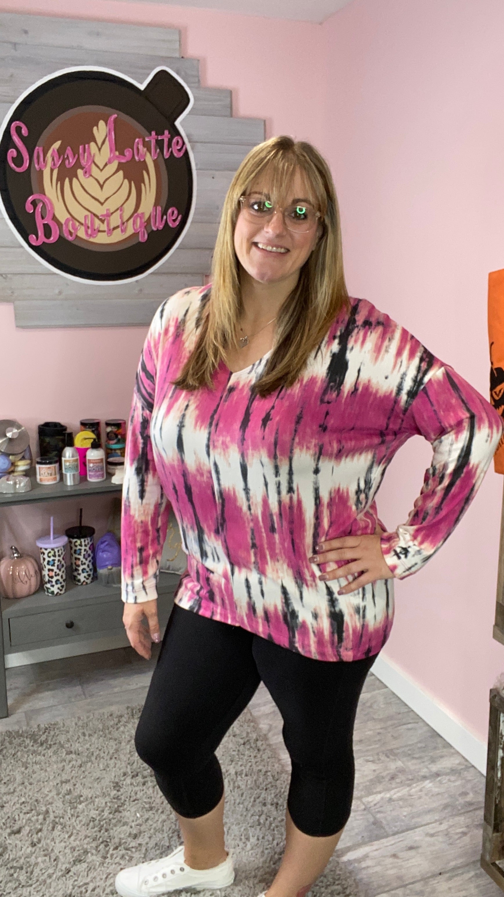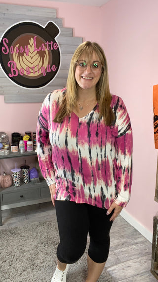 The colors in this dolman sleeve top are just gorgeous!! I love the design too! This one is true to size for a relaxed fit or you can size down one for a more fitted look.