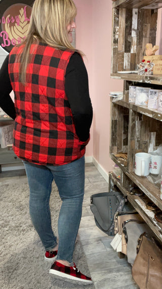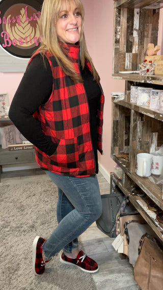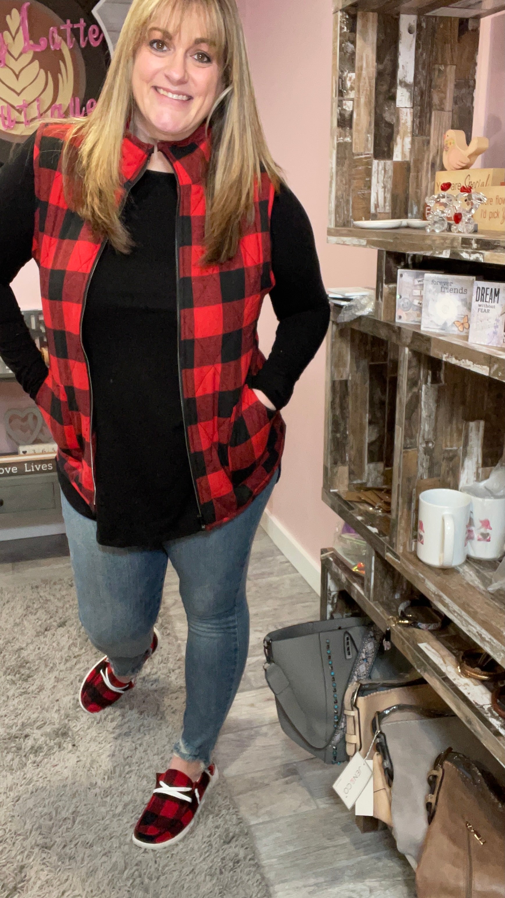 This zip up vest is all we could have imagined and more! This runs true to size, has low stretch, pattern stitching, pockets, and a silky interior liner so it slides over the layers easily!