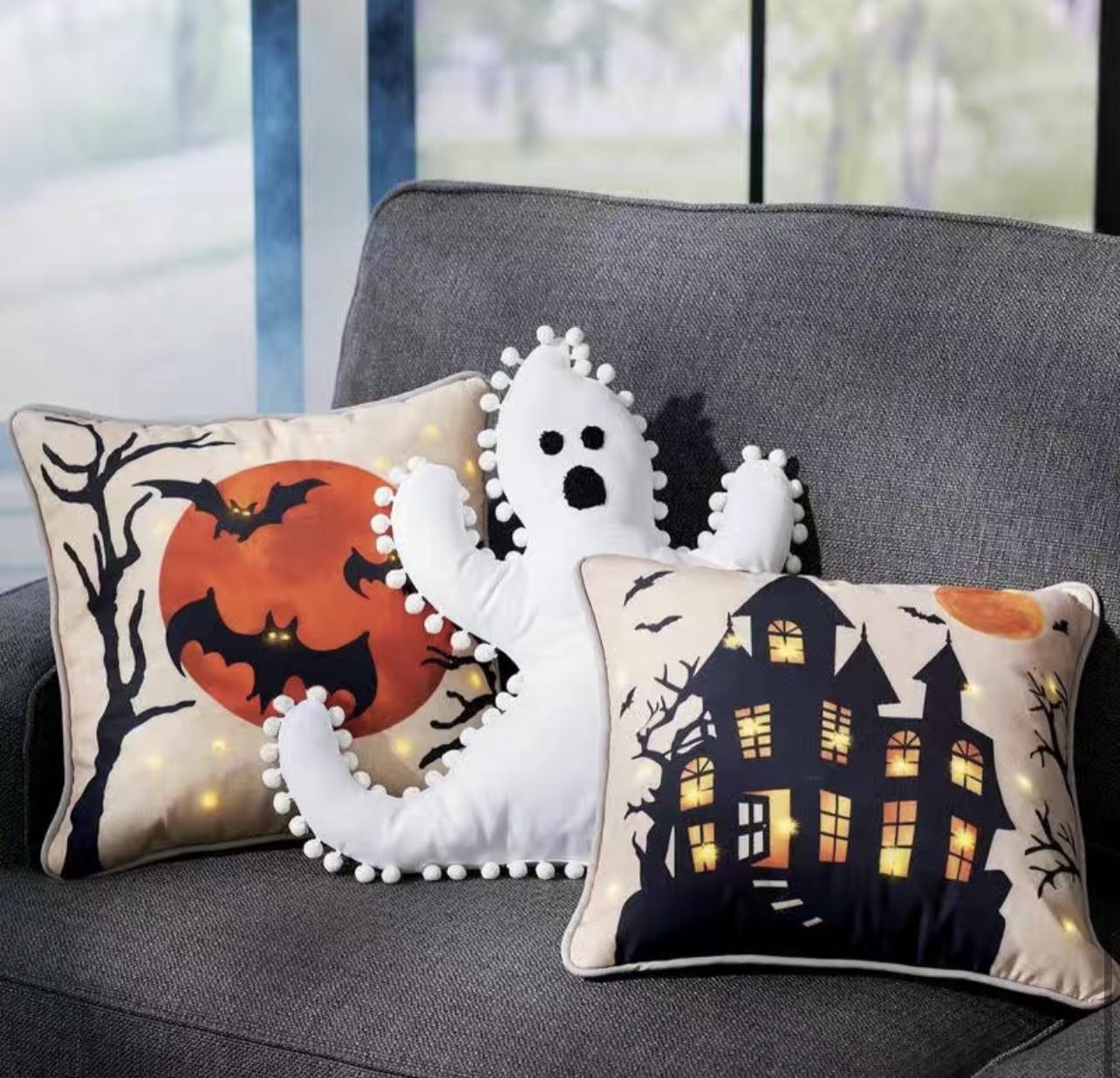 Snuggle up with our cuddly Ghost Pillow! This adorable ghost shaped pillow is perfect for your spooky decor, featuring a white ghost and a puff ball edge. Scare away your worries and get your boos in the night like only a ghost can!