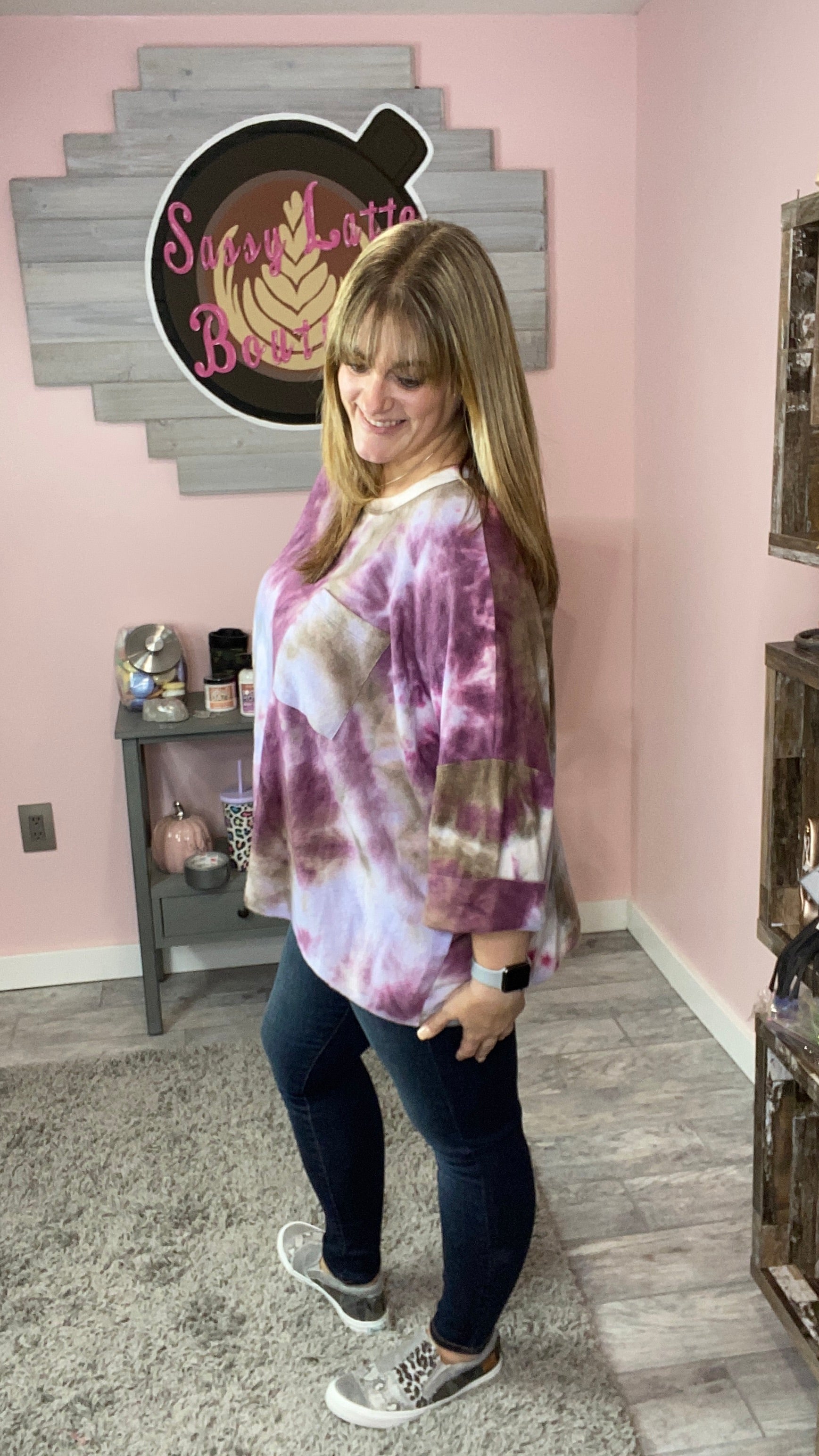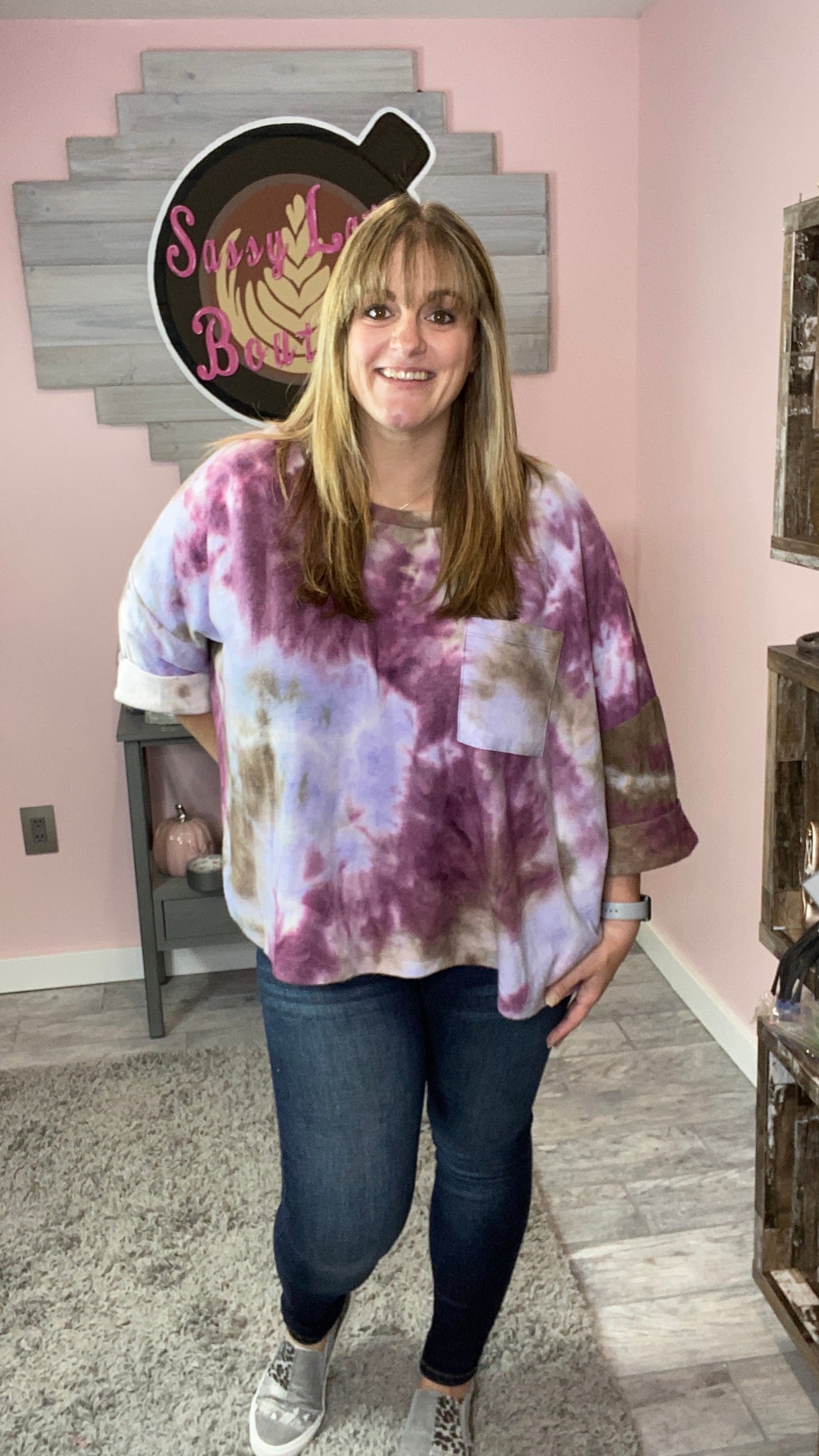 - I am wearing a size medium. You can size down or go true to size for a relaxed fit. This one does have an oversized boxy look no matter what size you choose. I am just loving it!!