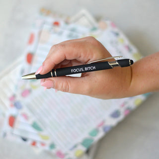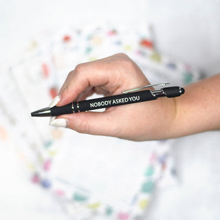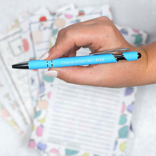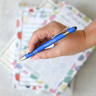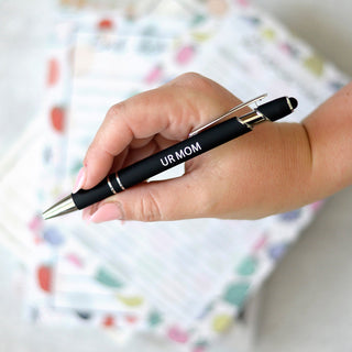 * An integrated stylus tip can navigate through most touch-screen devices.