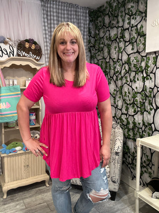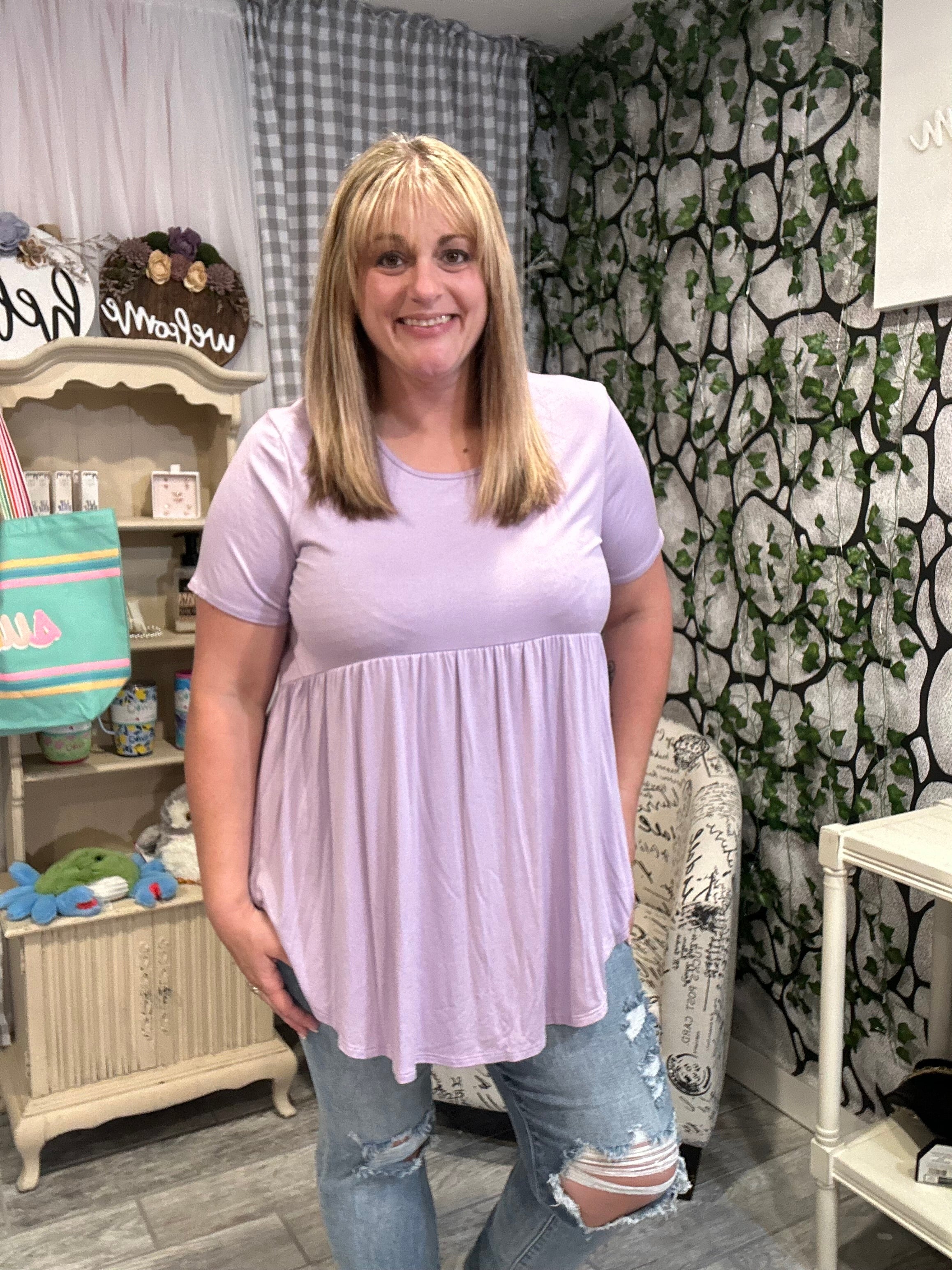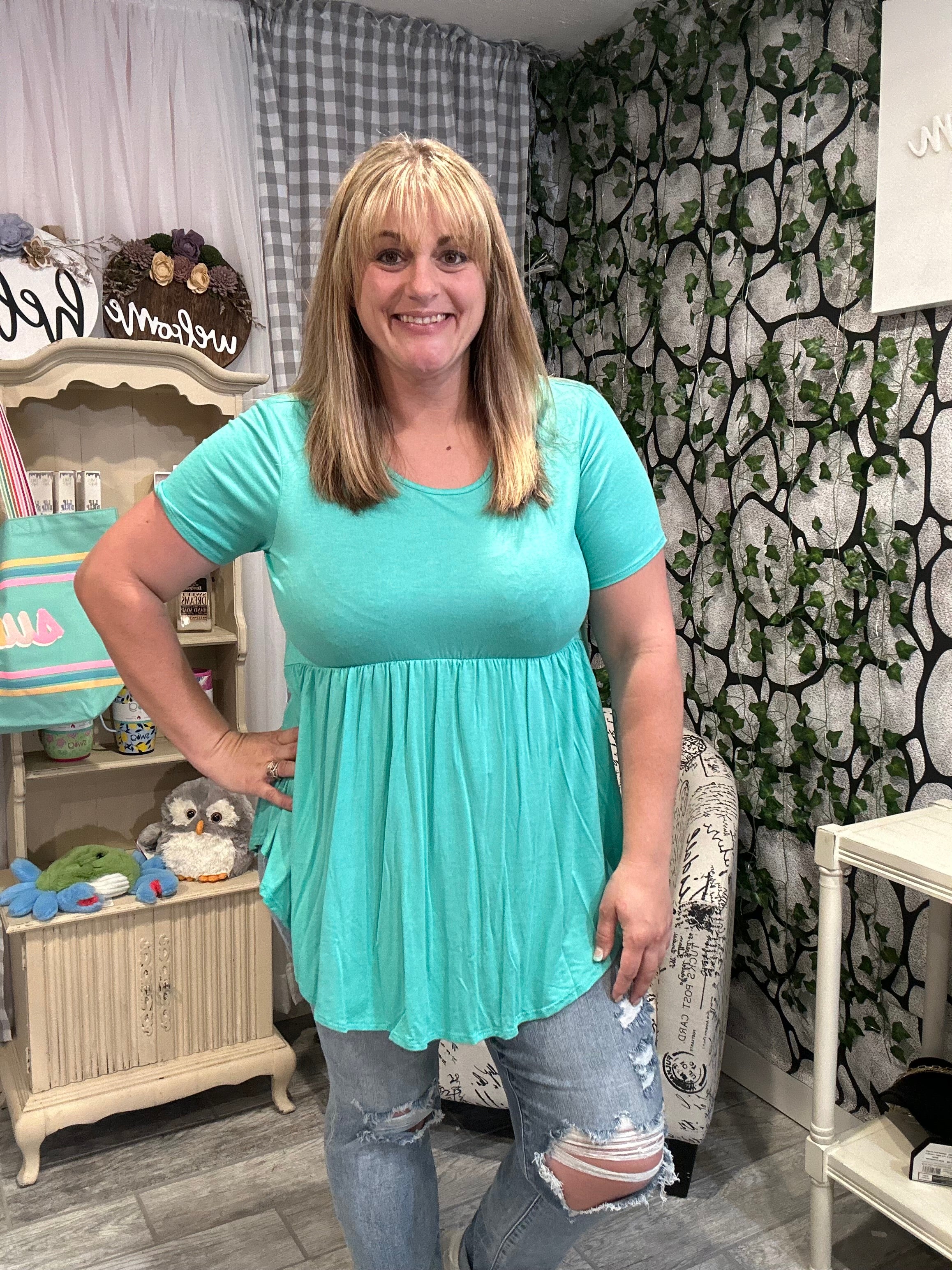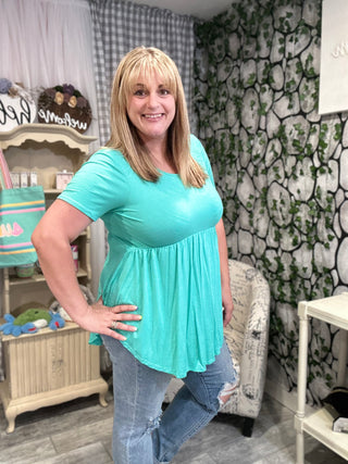 Our Solid Short Sleeve Babydoll Top is a classic piece of fashion for any wardrobe. With its timeless design, this top offers a sartorial finesse that is soft, sophisticated, and feminine. It is crafted from lightweight material and features a short sleeve cut that is perfect for any season. Elevate your look with this timeless piece of luxury.
