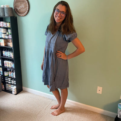 Denim Dress with Puff Sleeves and Back Tie