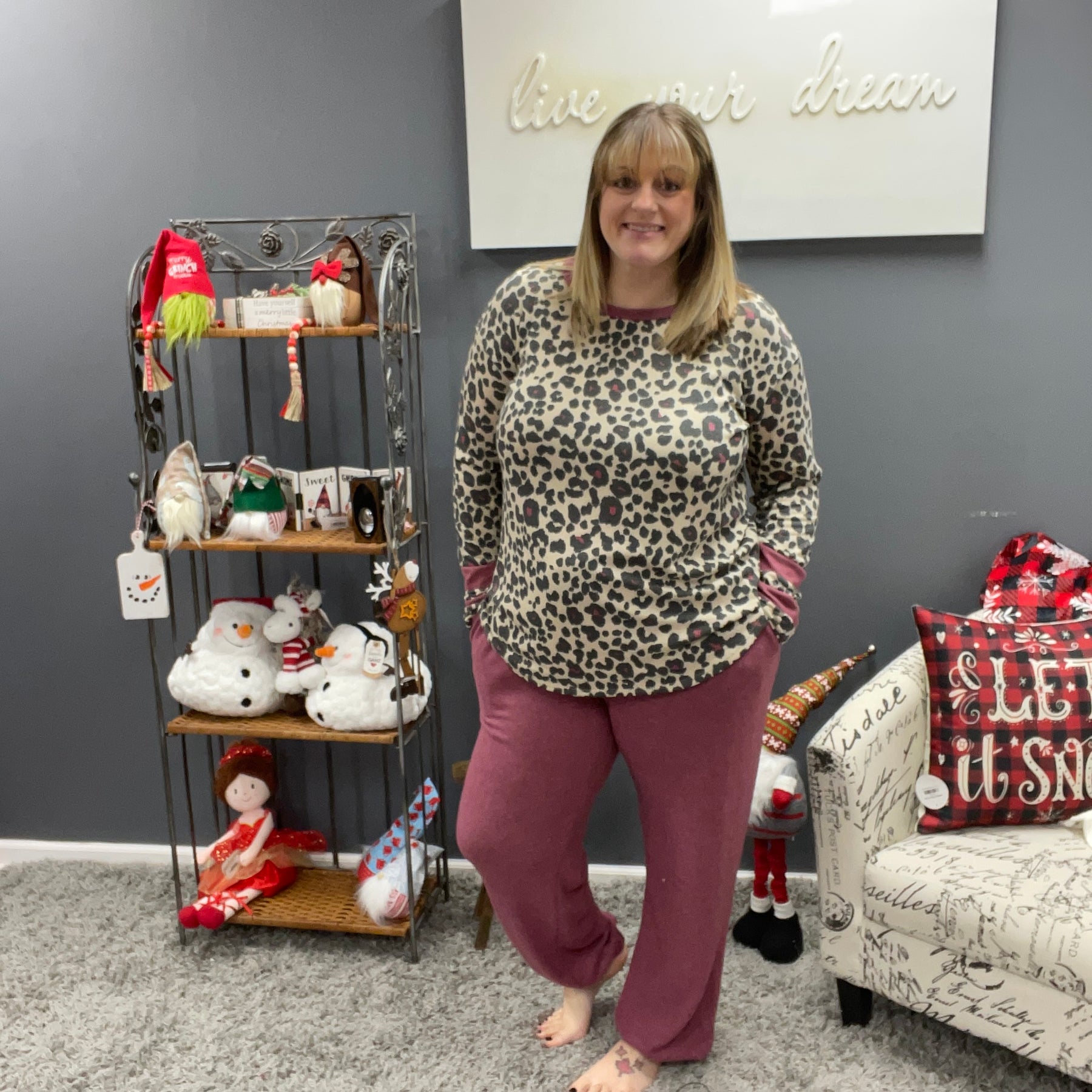 *Be sure to check out the matching top! (Mauve Leopard Scoop Neck Jogger Top)